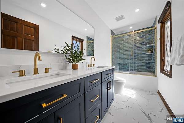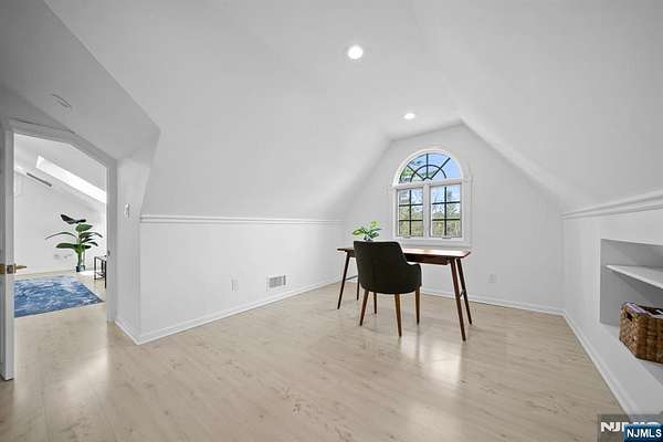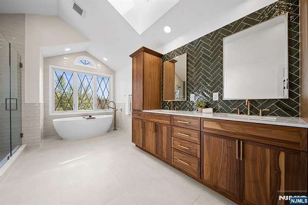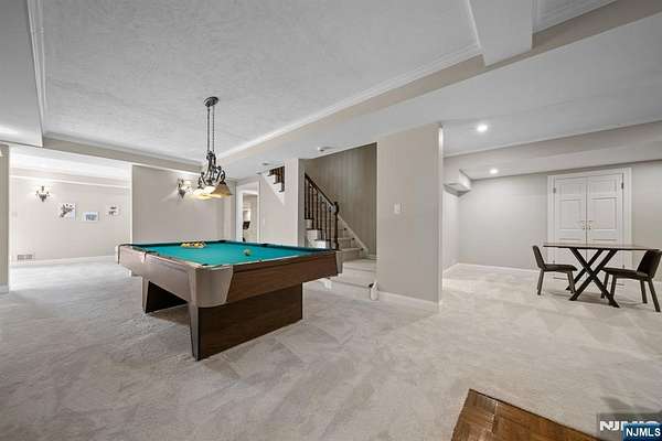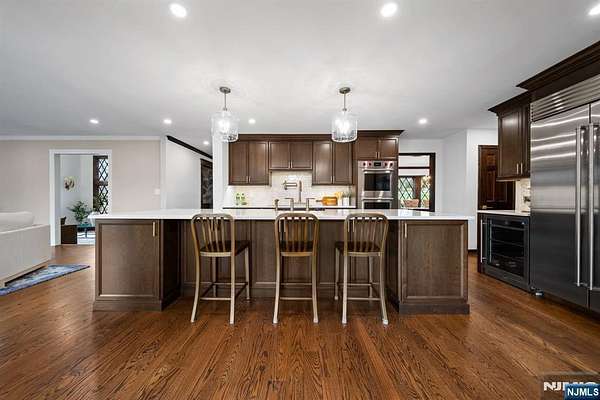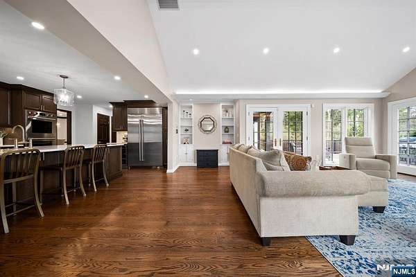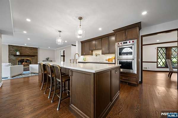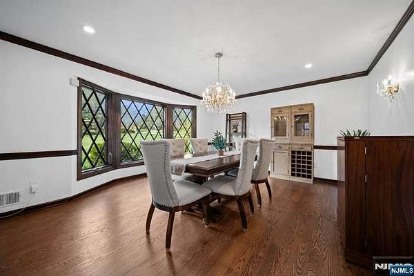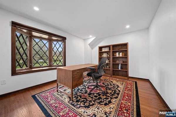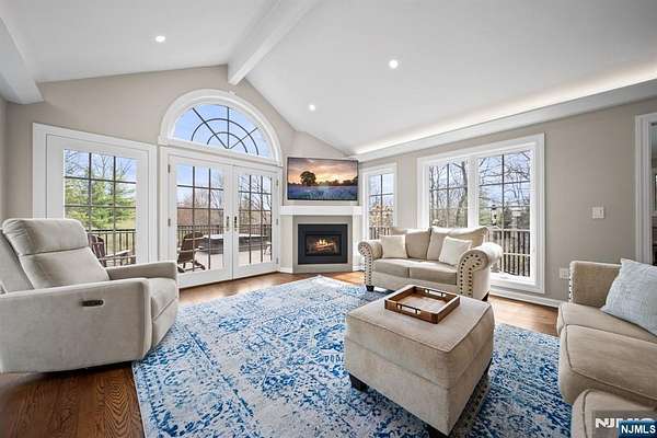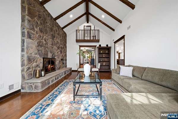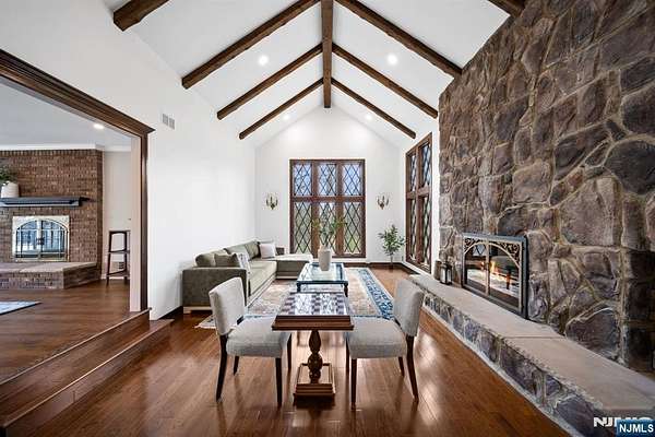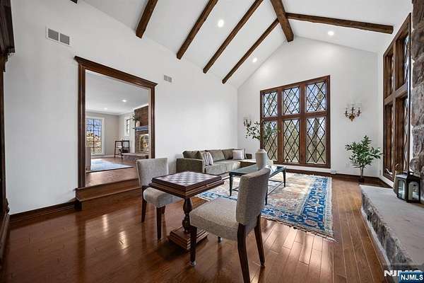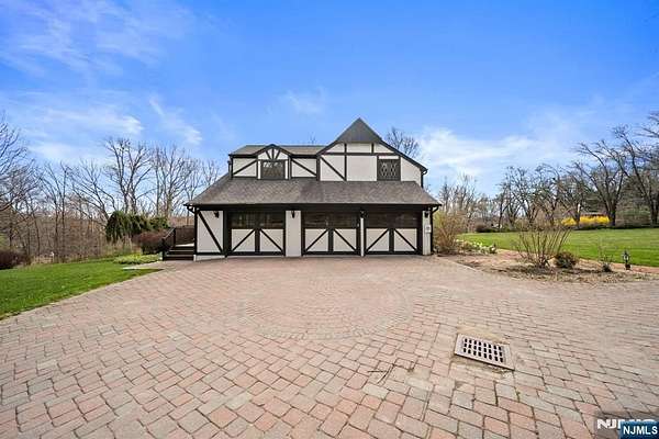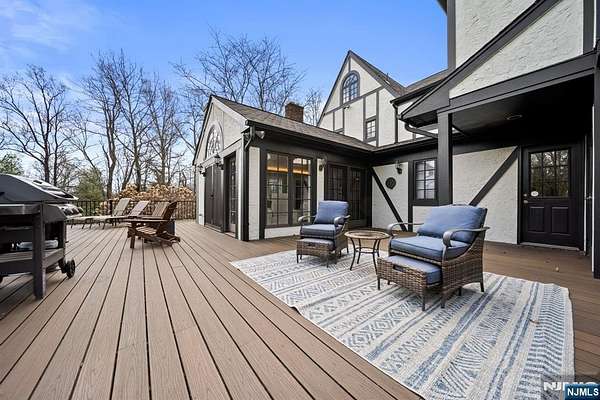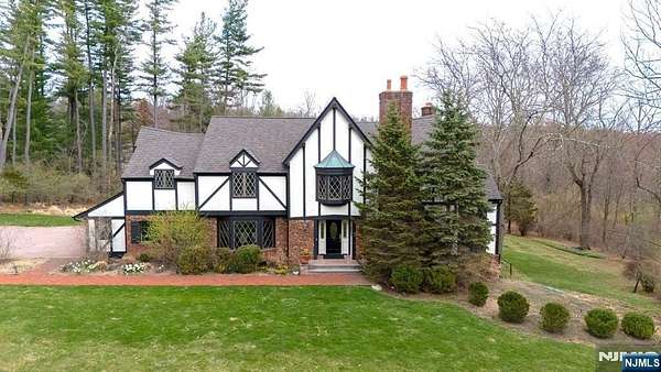 Welcome to this extraordinary Tudor Colonial set on three private acres, offering four levels of elegant living space. Architectural details include a dramatic formal living room with cathedral ceilings, a stone fireplace, and floor-to-ceiling diamond-pane windows. A banquet-sized dining room leads to a stunning chef’s kitchen (2024) with Sub-Zero and Wolf appliances, custom cherry cabinetry, quartz countertops, and an 11-foot center island. The kitchen flows seamlessly into a cozy den with a wood-burning fireplace and a sun-filled family room with a gas fireplace, both overlooking beautifully landscaped grounds and a newer Trex deck. Upstairs, four spacious bedrooms include a luxurious primary suite with smart shades, dual walk-in closets, and a spa-like bath with walnut cabinetry, soaking tub, oversized shower and water closet. A secondary en-suite and two additional bedrooms complete the level. The third floor offers flexible bonus space, currently used as an office and TV room. The finished lower level features a walk-out sitting area, gym, game room, wet bar, full bath, workshop, and storage. Additional highlights include a paver driveway, epoxy-finished three-car garage with first-floor access, and a spacious laundry room. This home offers a rare blend of elegance, comfort, and privacy, and is just minutes to Midtown-direct Morristown Train station, a vibrant downtown, parks, and trails. Come see it for yourself today!