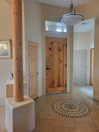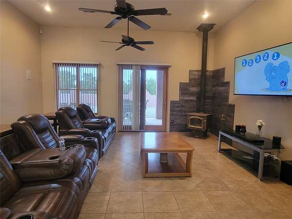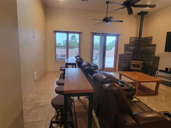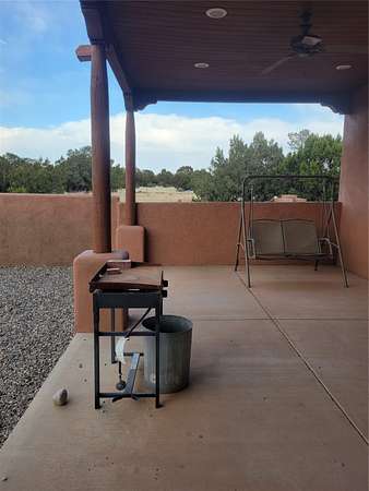 Highly motivated sellers! Country. Convenient. Comfort. This Pueblo Style home has had the price Cut to only $559,000. Which is belowthe appraisal of $585k in 2021!! It is secluded in a rural setting with easy access to I-25. Many large windows showcase the beauty of the area with striking views of Rowe Mesa. Only 40 minutes to Santa Fe and 30 minutes to Las Vegas with scenic drives both ways. It sits on 3 acres of unspoiled nature. The circular entrance opens to the welcoming warmth of this immaculately cared for home. A family area craves Cozy Cuddle-ups by the wood stove or patio opens to Courtyard Cookouts . Kitchen has beautiful granite cabinet tops and great, solid wood cabinets with unbelievable storage space. Extra large laundry room with W/D hookups, sink area and large cabinet space. Granite countertops in all bath areas. Master bedroom includes a massive walk-in closet. 3 car, insulated garage. High speed internet provided by Plateau is available. Main living area boasts a 14' ceiling and 12' ceiling in the rest of the home. Architectural design of Transoms above windows and doors increases natural light. Recessed lighting and Built-in sound system throughout. Walls are beautiful smooth, drywall . Solid wood doors and trim throughout. House includes radiant heat in the flooring. Upgrades in 2021 include 2 rooftop heating and refrigerated A/C units and new TPO roof on the entire structure (almost 5000 sf). Pella doors and windows. Bosch appliances. This home has special features to accommodate your large gatherings of friends and/or family, inside or outside. The hassle of the city is outdone by the secluded beauty and warmth of this home. Highly motivated sellers. Come take a look today!