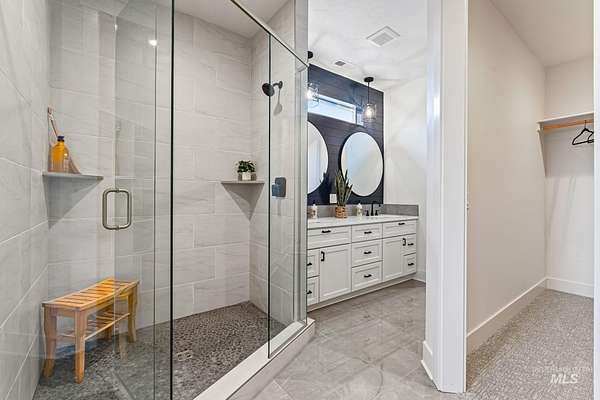 Escape the city! New construction, fully custom barndominium with massive mountain, river, and valley views. Monitor barn-inspired exterior with an extraordinary interior blending rustic charm and luxury finishes. Single-level living with soaring ceilings, a great room layout, and an open bonus loft. Features 3 bedrooms plus office. Primary suite with walk-in closet and tile shower. Split floorplan with "jack and jill" inspired bathroom. Covered rear patio overlooks breathtaking views. Find your solace surrounded by scenic beauty and year-round outdoor recreation--just 40 minutes to downtown Boise. Set on 2.5 acres for privacy and space for toys. Detached shop upgrade available. Built by renowned local builder Cascade Custom Construction.