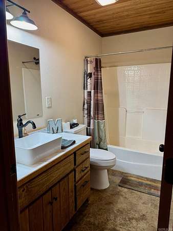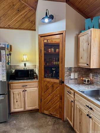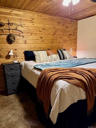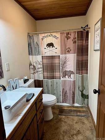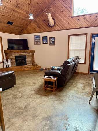 Looking for that special Lake get-away? Come be a part of the Silver Hills community located across from the highway from Twin Creek Road. This basically new 3 bedroom, 2 bath cabin home is situated on 2.88 acres m/l on a chip-n-seal road. Featuring stained concrete floors and wood ceilings that gives you the rustic feel every time you come home! In the combination living/dining area, you will enjoy the vintage-style fireplace, which is the centerpiece of the living area. The kitchen has a fabulous gas range and dedicated pantry surrounded by custom cabinets. There are 2 bedrooms and 2 baths downstairs with a large loft bedroom upstairs that overlooks the living area. On the exterior, you have an attached and a detached carport for your vehicle or boat storage. This house was completed in 2022 and has only had one owner. Oh, and I almost forget about the beautiful, red metal roof! Do not miss out on this one! $350,000.00