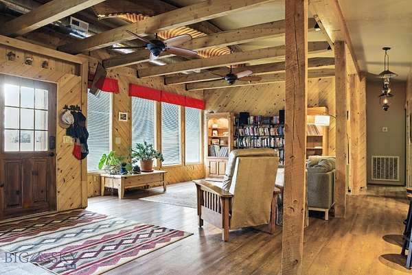 Paradise Valley Dream, this property has it all, two single family homes, over 12 acres, Yellowstone River access right across the road, 40X80 shop with 220V, 12X48 loafing shed, fenced pastures, incredible Absaroka Mountain Views, no HOA and minimal covenants. Primary home is owner occupied, land berm, 2736 sf, 3 BR, 2 BA single level living, southern exposure, wonderful passive solar, with attached single car garage. Guest home is 1155 sf, 2 BR, 1.5 BA with deck overlooking Yellowstone River and Absaroka Mountains. Guest home has been proven to be a very profitable short term rental but has been used exclusively by family for the past three years. The two homes share a well and each have a private septic, updated and central heating systems in both guarantee year round comfort. Located mid way between Livingston and Yellowstone National Park, freedom to enjoy all that Montana has to offer. Tractor and farm implements available in a separate sale.