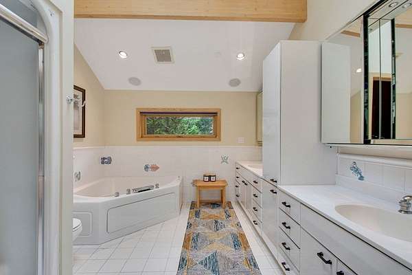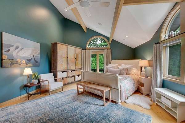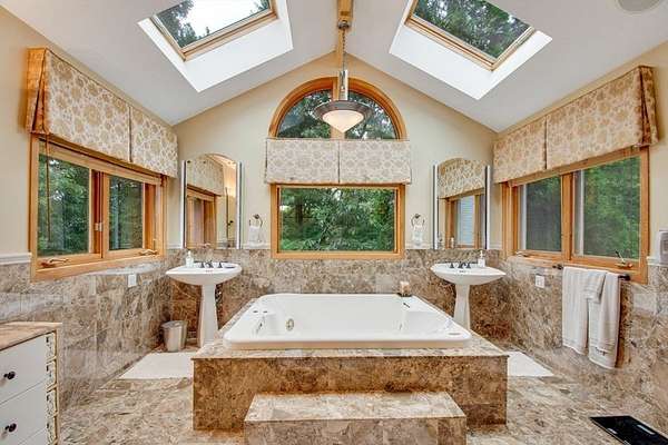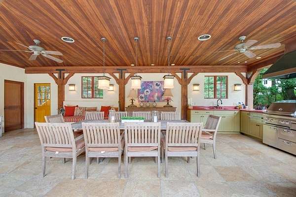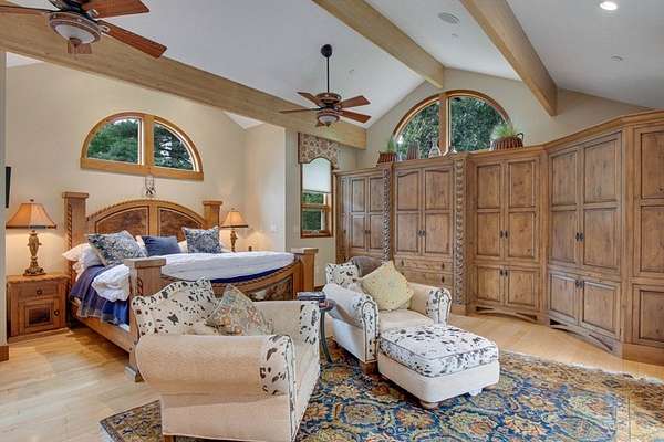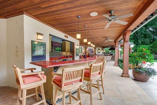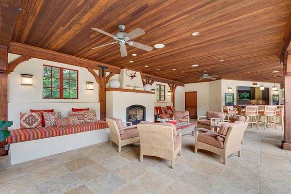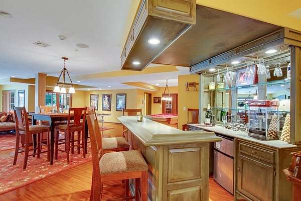 Situated behind wrought iron gates, this 2+ acre estate was created by visionary owners and stands as a one-of-a-kind masterpiece. Upon entering the main residence, you're welcomed by a dramatic foyer with a dual staircase, immediately highlighting the home's impressive scale and sense of arrival. The main residence boasts 6 bedrooms, 5 bathrooms, a chef's kitchen, heated flooring, multiple entertaining areas, an office, and incredible natural light throughout. Designed to accommodate both large gatherings and intimate moments, the spaces effortlessly blend grandeur and comfort. Notable features include a sports court, extensive landscaping, a putting green, a climate-controlled wine cellar, a gym, an integrated sound system, a three-car garage, pool / hot tub, and a pool house. The pool house offers multiple lounging areas, a fireplace, a full bar with beer taps, a dining area, half-bathroom, and a laundry room. Live like you're on vacation every day in this trophy property.