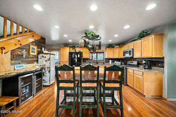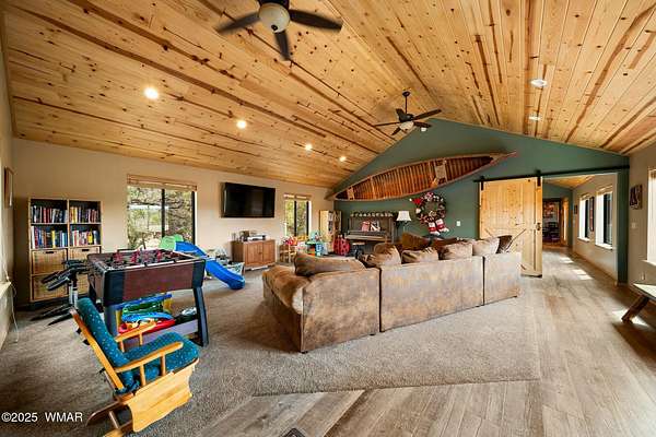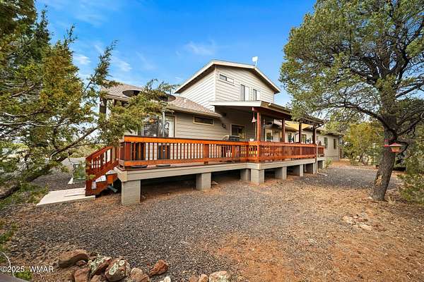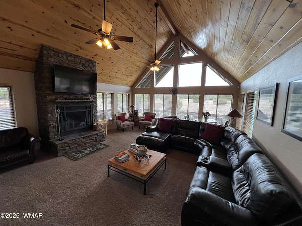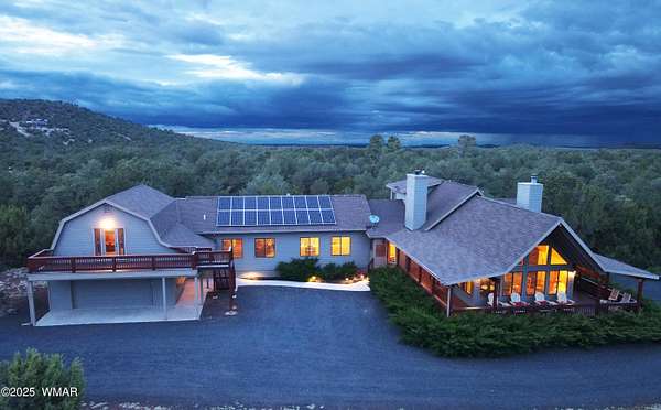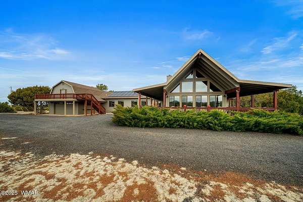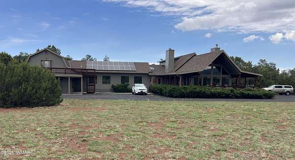 Secluded Mountain Cabin Retreat - 4,371 Sqft home on 8 private acres with Bunkhouse, Game Room & grid power and Solar. Located near Show Low. With 5 bedrooms, 4 baths, and two roomy family areas, this elegant and cozy escape offers endless possibilities for relaxation, entertaining, and unforgettable gatherings. Highlights: Breathtaking Views: Unobstructed mountain panoramas from decks designed to show sunrises, sunsets, and snow-dusted peaks. Connected Bunkhouse: Perfect for kids or guests-complete with full bath and private balcony. Spacious & Multi-Functional Layout: Two family rooms (one with a wood-burning fireplace), a formal dining area, and a built-in game room ready for memories. Outdoor Entertaining: Wraparound decks, a gas grill, pizza oven, smoke vault, and Adirondack chairsideal for cookouts and starry evenings. Green Tech Meets Comfort: On-grid city water and power augmented by a solar-off-grid system with generator backup. Horse-Friendly Setup: Zoned AGbring pets or horses and embrace the country lifestyle. Imagine The Lifestyle: Wake up with fresh mountain air, sip coffee on the deck, then take off on an ATV into the nearby National Forest. Spend the afternoon at Lyman Lake State Park or Fool Hollow Lake, just minutes away. Afterward, grill pizza in the backyard and unwind by the firethis cabin captures the spirit of family-style mountain living. No HOA