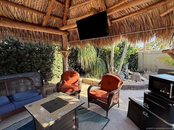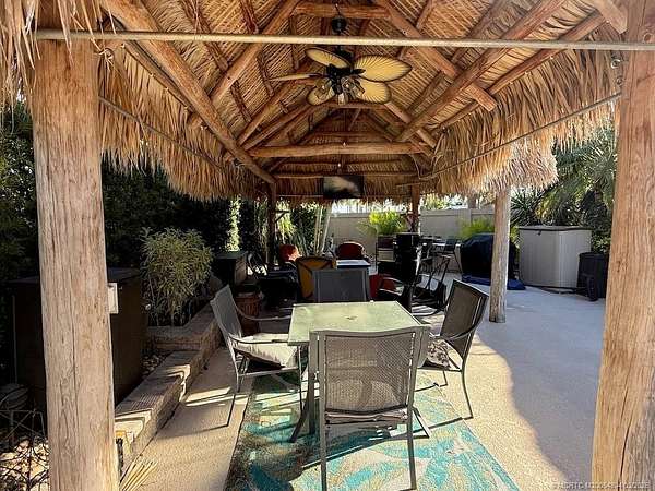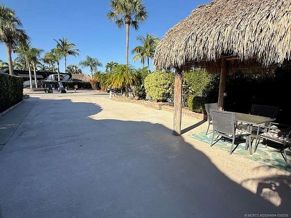 Ideally located between the clubhouse and the south satellite pool, this oversized 2,753-square-foot lot offers the perfect combination of convenience, privacy, and lush natural beauty. Backing onto a serene preserve, it provides a peaceful escape that feels like your own private retreat. The property boasts a spacious tiki hut, perfect for entertaining, as well as a bonus bar/tiki, creating an additional space for gatherings, cocktails, or quiet relaxation. Thoughtfully designed landscaping enhances privacy while maintaining a tropical ambiance. With ample parking for two vehicles and a golf cart, convenience is never an issue. From the moment you step into the tiki, you'll feel right at home. Whether you're hosting friends, unwinding in the shade, or simply soaking in the tranquil surroundings, this lot offers an unparalleled resort lifestyle. Don't miss out-come experience this hidden gem for yourself!