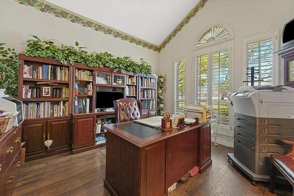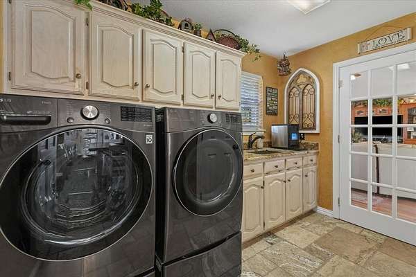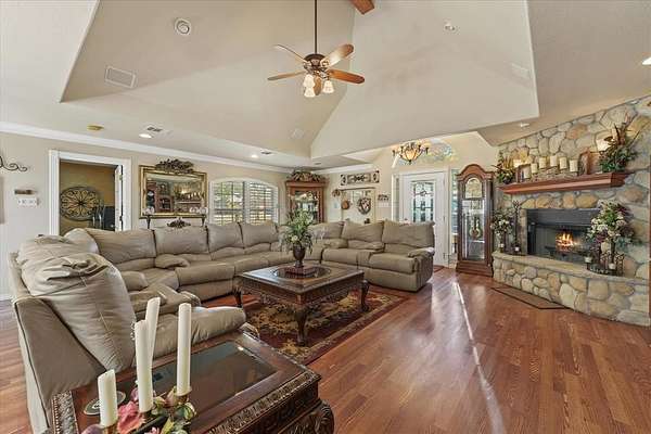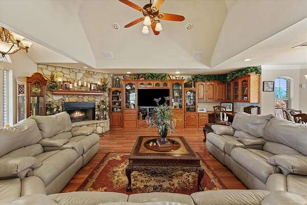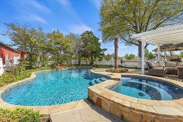 From the moment you arrive, the Austin stone exterior with its elegant brick smear creates immediate impact and curb appeal. A secondary front entrance leads directly to the resort-style backyard, complete with a sparkling swimming pool, koi pond, and a spacious patio that seamlessly connects to the enormous 4+ car garage—fully outfitted with workbenches, storage, and everything an over-prepared garage enthusiast could want.