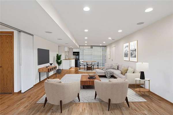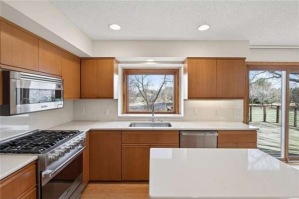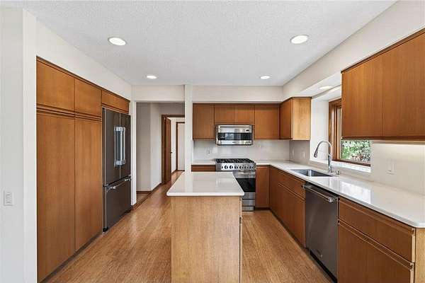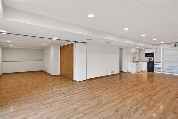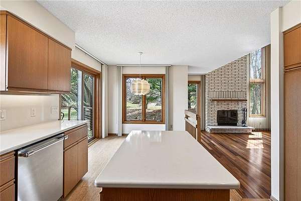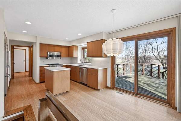 Beautiful contemporary home on 3.56 wooded acres at the end of a quiet Dellwood cul-de-sac in the Mahtomedi School District. This modern home offers an open floor plan, fresh interior paint, and expansive Marvin windows overlooking a private ½-acre pond, creek, and mature trees. Exterior upgrades include James Hardie Artisan siding and Class IV impact-resistant shingles for enhanced durability and long-term value. The main level features bright, open living spaces, while the walkout lower level provides a finished family room, kitchenette/dining area, and a potential in-law suite with an option for a 4th bedroom. Step outside to the patio and enjoy the backyard fire pit surrounded by nature. A spacious two-level deck overlooks a serene pondless water feature just off the kitchen and deck—perfect for relaxing or entertaining. The 3-car garage includes a large Spancrete storage area below, ideal for hobbies or extra storage. Prime location near Pine Tree Apple Orchard, Dellwood Hills Golf Club, White Bear Yacht Club, Tamarack Nature Center, 7 Vines Vineyard, 2 Silo Winery, White Bear Lake, downtown White Bear, and convenient shopping and dining.