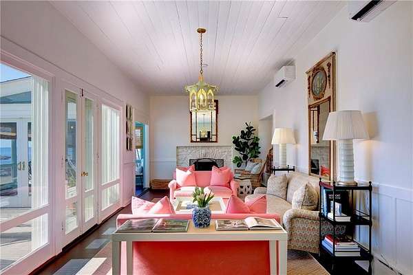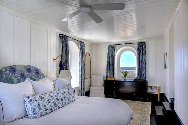 "STONE HOUSE" located just off of Newport's historic Ocean Drive on the Prices Neck Peninsula the property spans from the Atlantic Ocean to Prices Neck Cove. Built in 1898 by famed photographer Ernest Walter Histed, the residence with its crenellated stone architecture has commanding views across beautifully manicured lawns, mature trees and gardens to the ocean and the cove. The interior is flooded with sunlight from oversized windows and doors. The breathtaking views from inside include expansive views of the private beach with rocky outcroppings with the ocean to the south, and the tranquil cove teeming with sea birds including giant blue herons, osprey and egrets. The expansive grounds include the stately 7-bedroom main residence, a charming guest cottage with adjacent gym & separate sauna. A private dock is tucked securely into Prices Neck cove along with two moorings. Offering exceptional privacy, this extraordinary property is a uniquely rare opportunity in one of the most sought-after areas of coastal Newport.