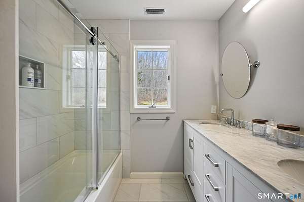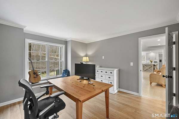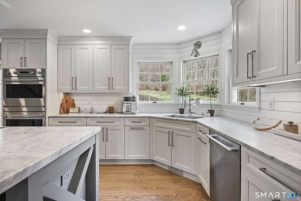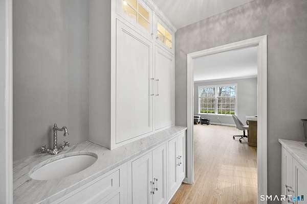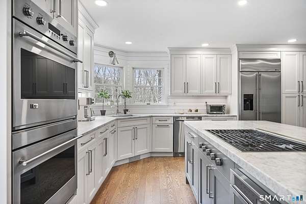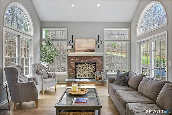 Welcome to this beautifully renovated 4-bedroom, 2.5-bath Colonial nestled in a highly desirable subdivision, where timeless design meets modern luxury. Step inside to a dramatic two-story foyer that sets the tone for the rest of the home. The main level features newer hardwood flooring and an open, flowing floor plan ideal for both everyday living & entertaining. At the heart of the home is a stunning, custom-designed kitchen complete with built-in appliances, marble countertops, and high-end cabinetry. The sun-drenched family room impresses with its vaulted ceiling and cozy wood-burning fireplace, creating a warm and inviting space. Additional main-level highlights include a private office with French doors, a butler's pantry with wet bar, a formal living room, and a convenient mudroom off the two-car garage with custom built-ins. Upstairs, you'll find refined carpentry and four generously sized bedrooms, including a luxurious primary suite featuring a tray ceiling and a well appointed full bath. A second full bath serves the additional bedrooms. The finished lower level offers a versatile recreation room, perfect for a playroom, media space, or home gym. Outside, the property is truly exceptional-professionally landscaped with elegant stone walls, ambient landscape lighting, and a gorgeous in-ground heated pool that transforms the backyard into a private oasis. This home combines sophisticated style, thoughtful upgrades, and an unbeatable location.