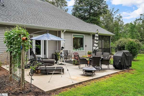Welcome to your own slice of paradise--just minutes from downtown Travelers Rest and the splendor of the Foothills Mountains! This nearly 7-acre haven blends luxury, living off the land, and rural charm in a picture-perfect setting. As you enter the home you will notice custom features throughout like heavy crown, trey ceilings, hardwood, tile flooring, granite counter tops & large picture windows overlooking your beautiful backyard. All window treatments include custom blinds, shutters, roman & roller shades. The inviting living room features a gas log fireplace with stone surround & wood mantle creating the perfect spot to relax or gather. The heart of this home is a chef's dream kitchen boasting granite countertops, custom cabinetry with crown molding, stainless steel KitchenAid appliances, and a unique rollaway cabinet system with hidden outlets & under-cabinet lighting to tuck away your larger appliances. The space is complete with a lazy Susan, pull-out drawers for your convenience & a large walk-in pantry. Just off the kitchen is a breakfast room with bay windows. A spacious flex room with a large picture window offers inspiring views of your private backyard--ideal as a home office, formal dining room, or multi-purpose space for your lifestyle. There is also a mud room equipped with washer/dryer, utility sink, and pet door--with direct access to a fenced pet area for your furry friends. Unwind year-round in the screened patio or expand your gatherings onto the expansive back patio--an entertainer's dream for stargazing or summer cookouts. If you've ever dreamed of living off the land this property is fully set up with a 40'x50' garden space, four apple trees, 19 blueberry bushes, five peach trees, two pear trees, two large fig bushes, grape/muscadine vines, and a watering system. Enjoy fresh eggs from your own chicken coop! Many wildlife like deer & bucks love to frequent this land. Nature lovers will adore the established landscaping--crepe myrtles, magnolias, butterfly bushes, Japanese maples and vibrant green lawns. There is a watering system for the side yard & embankment as well. The 30x40 pole barn is insulated, plumbed, gated, has electricity, vinyl windows, tall ceilings, includes a workshop & a motorized door. Extensive landscaping and turf improvements keep the grounds lush! Enjoy all the peace of private acreage--with quick access to Travelers Rest (just 10 minutes), the Swamp Rabbit Bike Trail, Table Rock State Park, Ceasar Head, Vineyards, Easley is just 25 minutes and only 30 minutes from award-winning downtown Greenville and its amenities. Don't miss the chance to own this one-of-a-kind retreat that offers privacy, luxury, and everything you need for modern homesteading. Schedule your private tour today!