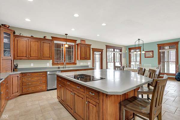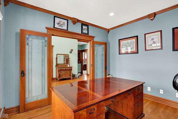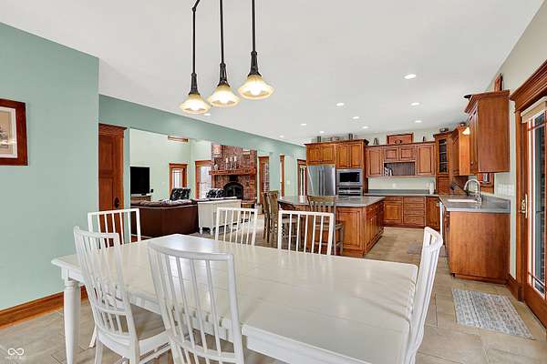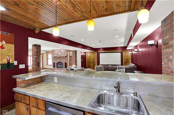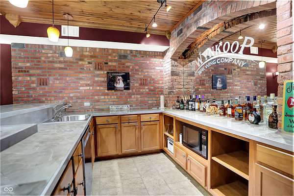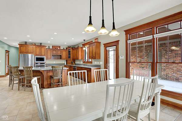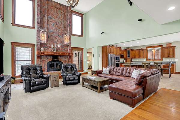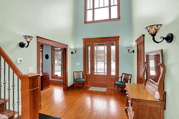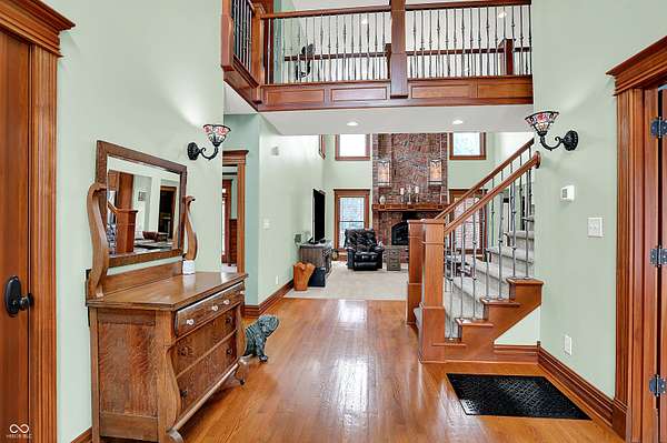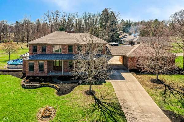 The attention to detail in this beautiful craftsman style home is simply stunning!!! This home is a dream come true for a buyer who wants it all !! The home features 5 bedrooms, 4 full baths, 2 half baths, walk out finished basement, main level primary bedroom, main level office, handmade doors, hardwood floors, new carpet on main level & stair case, all brick exterior, 5533 total sq. ft., lovely portico, TWO - 2 car heated garages, 2 fireplaces, horseshoe driveway, covered front porch, deck in back, 800 sq ft. exposed aggregate patio, above ground pool, over 1.5 acres with mature trees and backs up to White Lick creek! The kitchen boasts of beautiful Amish made cabinets that's quality is second to none, gigantic center island fantastic for entertaining while preparing a gourmet meal, new kitchen aid stainless steel appliances, tile flooring & fresh paint complete this beautiful kitchen! You will enjoy the light and bright feel of this home with the unusually tall custom prairie design windows and transoms that let in natural light from every direction and the views are picturesque! The main level primary bedroom is over 600 sq ft. with private entrance to the back deck, double vanity, garden tub, separate walk in shower and a large custom built closet complete with an island. You will be impressed with all of the unique extras such as 100 year old salvaged bricks from all over Indiana, handmade inset stained glass, antique hardware and a beautiful 9' oak door that opens to a 20' grand entry. The basement will be a great hangout where people will want to gather and see the custom bar area & home theater with 100" projection screen and lovely fireplace. Home has 2 newer 96% eff HVAC systems and the list goes on!