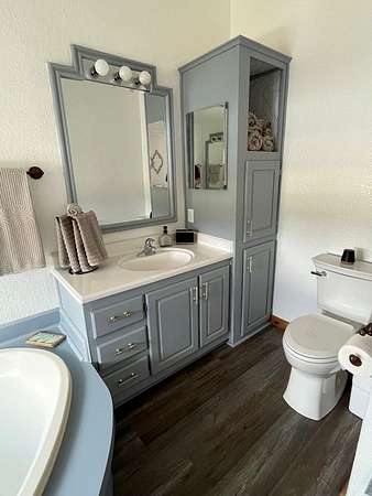 - Fireplace, Flooring, Gas, Laminate, Quartz Countertops, Shower, Walk-In Closet