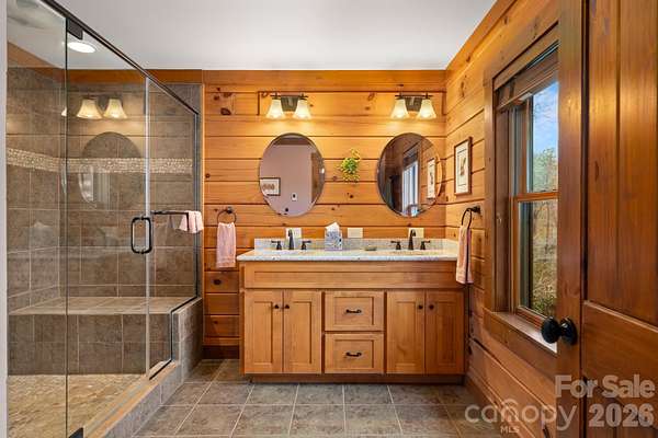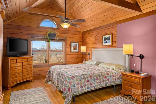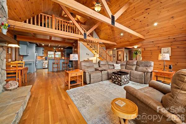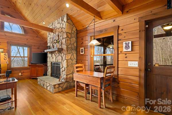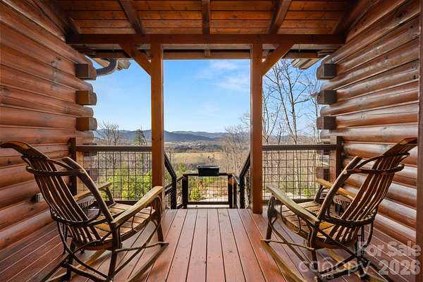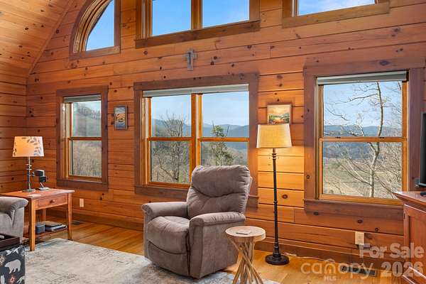 Aren't we all looking for that log cabin in the mountains with long range views?!?....claim your slice of mountain paradise with this charmer! Perched on the side of a mountain in Moores Valley, this home offers stunning northwestern views of the mountains all year long. Revel in the views from your choice of the rocking chairs on the front porch, the wall of windows in the living room, or the cozy side screened porch. This modern day cabin gives you all the 'old world' feels from the log construction while also bringing in conveniences like a contemporary kitchen, tankless hot water heating, & solar panel energy. The living room ambience starts with the exposed beams in the vaulted ceiling, continues to warm in the stone hearth gas fireplace, and delights with the wall of windows facing the mountains. The open stylish kitchen sits just behind the living room, and has granite counters, induction cooktop, 2 drawer dishwasher, wall oven & wall microwave, walk in pantry, farm house stainless steel sink, and cpull out drawer cabinetry. Enjoy your meals in the dining room that also offers rear stone patio access, or take your meals on the cozy side screen porch. Lookout on the view from bed in the primary bedroom! You'll also find more exposed beams, pocket doors, & a walk in closet w/ built in wooden clothes organizer. The luxurious ensuite bath has granite counters, tile floors, double vanities, & a huge glass/tile shower w/ 2 shower heads, body jets, & a shaving bench. Also on the main floor is a 2nd bedroom, a hall bath w/ a 6ft bubble jet tub, and a laundry/mud room w/ utility sink, cabinets, fold down ironing board, & combo LG washer/dryer. The loft overlooks the living room windows, & offers flexible use space. The basement space incorporates a 2 car garage, workshop space, utility room, & rough in for a 3rd bath. The metal roof has a 23 panel solar array designed to power 75% of the house's energy use, and there's a backup generator just in case too. A 1/2 mile walking trail meanders over the 1.75 acre lot. Moores Valley is a gated subdivision with a clubhouse, community firepit, and pavilion.
