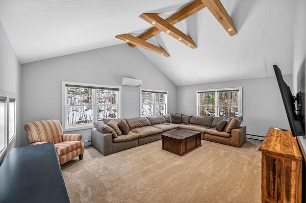 Enjoy stunning views, privacy, and luxury, from a rare offering of a home at the Peaks at Mt Snow. This luxury community sits above the Greenspring development, directly across from the ski slopes at Mount Snow, with access to all the great amenities including club house, gym, indoor pool and hot tub, tennis courts, game room, on site management company, and direct shuttle service between your home and the base area. This home has been completely renovated and expanded, and features breathtaking views of the ski trails, fireworks displays, and sunsets over the ridgeline, from many of the rooms. The home uniquely features 5 full suites, one of which is on the main floor, as well as a main floor guest bath, an expansive great room with vaulted ceilings, massive stone fireplace with rustic archways, a gorgeous new chefs kitchen with stainless appliances, tile backsplash, farmhouse sink, custom cabinets, island with waterfall counters, amazing natural light and warm lighting schemes, a spacious dining area, media room with built in bookcases, second floor family room with vaulted ceilings, exposed beams, and built in bunk room accessible via barn doors, a vaulted Vermont entry, large mudroom entry with cubbies ideal for winter gear, large new deck overlooking the views, and extensive landscaping. Head to toe renovated with new minisplit a/c. Truly a unique 4 season retreat perfect for entertaining with all the privacy of a home, but all the benefits of community living.