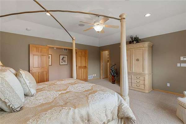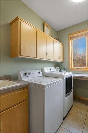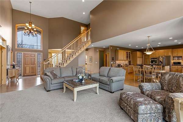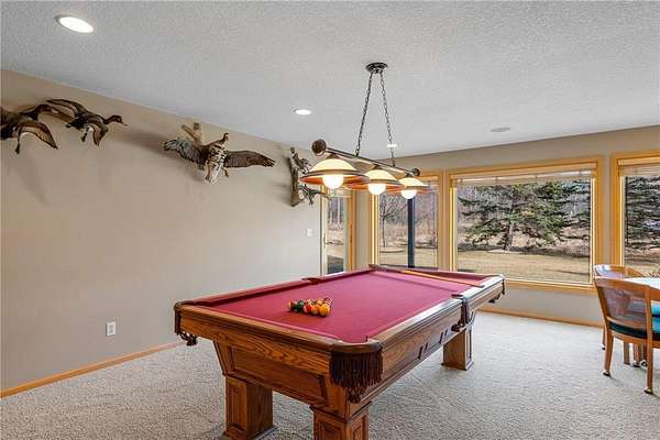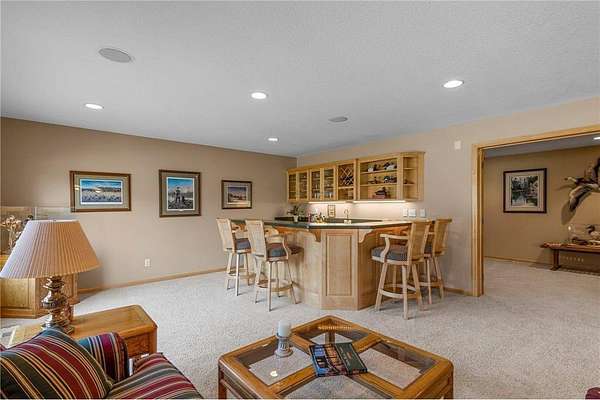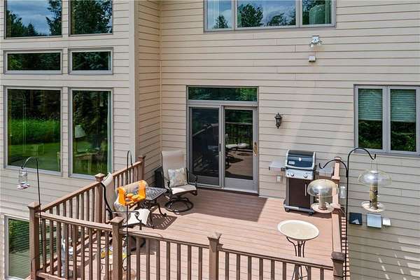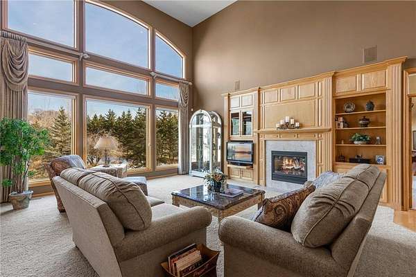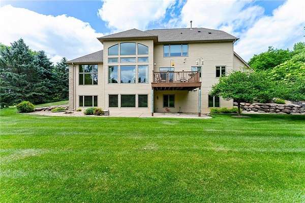 This meticulously maintained, stunning custom-built 5-bedroom, 4-bathroom home is nestled on a peaceful cul-de-sac in Dellwood, offering modern convenience and tranquil, nature-filled surroundings. The kitchen is a chef's dream with beautiful wood flooring, natural maple cabinetry, and granite countertops. A spacious center island boasts a built-in Wolf range cooktop and breakfast bar seating. Stainless steel appliances, including a double wall oven, reverse osmosis water system, and a 5x4 pantry, are complemented by a stunning tile backsplash. Adjacent to the kitchen, the informal dining room features elegant wood flooring, a stylish chandelier, and seamless access to the maintenance-free 14x14 deck--perfect for indoor-outdoor entertaining. The spacious living room has soaring 18-foot ceilings and floor-to-ceiling windows filling the space with natural light. Plush carpeting, a double-sided gas fireplace with a tile surround, and custom maple built-ins enhance the space. The main-level den features glass French doors, plush carpeting, a wet bar, and a double-sided gas fireplace shared with the living room. Large windows on both ends allow natural light in, creating a bright, inviting space. The formal dining room has wood flooring, a chandelier, and a built-in buffet. Large windows provide ample light. The main-floor laundry room, located off the kitchen, includes a utility sink, generous counter space, and ample cabinetry. On the upper level, the spacious primary suite boasts tray ceilings, a ceiling fan, large windows, and plush carpeting. It includes a 21x10 walk-in closet with built-ins. The luxurious en-suite has a jetted bathtub, a large tiled walk-in shower, and a double vanity with generous storage. Bedroom two is carpeted and includes a 6x5 walk-in closet. It shares a Jack and Jill bathroom with bedroom three, each with a private vanity. The shared full bathroom is separated by pocket doors, offering privacy while providing access to the shared tub/shower combo. Bedroom three is spacious, featuring dual closets and a cozy nook with a window overlooking the side of the home. The lower level, with carpeting throughout, offers a spacious recreation area with large windows and walk-out access to the backyard patio. Adjacent is a wet bar area with silestone countertops, a two-tiered bar with high-top seating, ample cabinet space, a sink, and a small fridge--perfect for entertaining. The lower level also includes a versatile exercise room or flex space with French doors and a mirrored wall. Bedrooms four and five both feature 5x5 walk-in closets and backyard views, just steps from the shared 3/4 bathroom. The bathroom has tiled floors, a single vanity with storage, and a walk-in shower. The attached, heated, finished, and insulated three-car garage boasts epoxy flooring and hot and cold running water, ensuring year-round vehicle protection. The garage entrance opens into a tiled mudroom with built-in cabinetry, a walk-in closet with shelving, and coat racks, along with a nearby 1/2 bathroom. Additional features include a security system, a new furnace air exchanger (2025), Anderson windows, an added Kinetico water system (2024), and a new water pump (2024). The home also has three-zone heating and cooling, a central vacuum system, and stereo surround sound speakers throughout. Located in the highly sought-after Mahtomedi School District, this home is just a short drive from shopping, dining, Dellwood Country Club, Oneka Ridge Golf Course, White Bear Lake, and several parks.