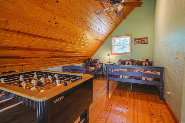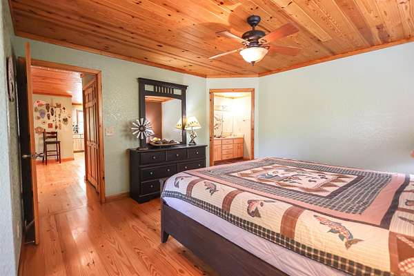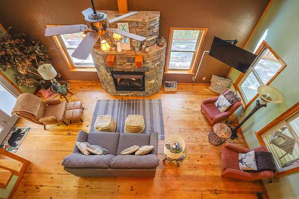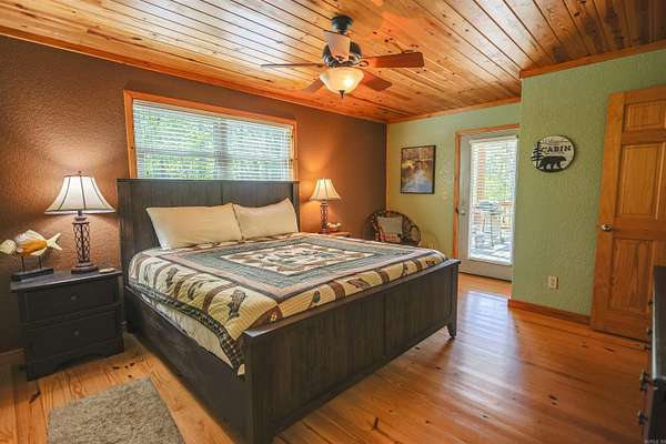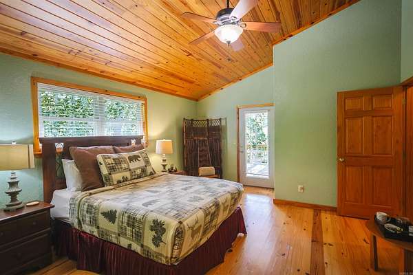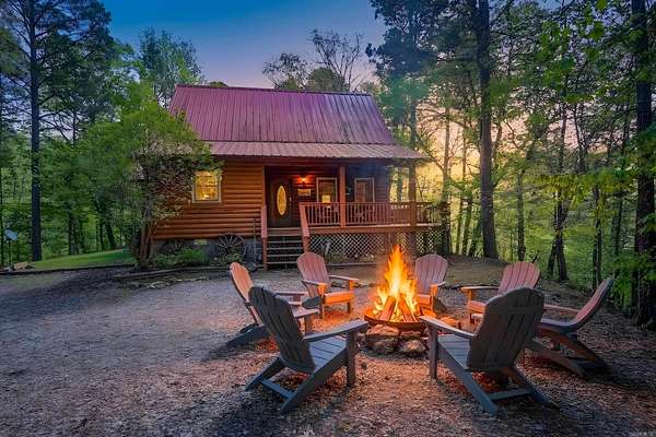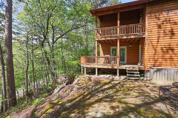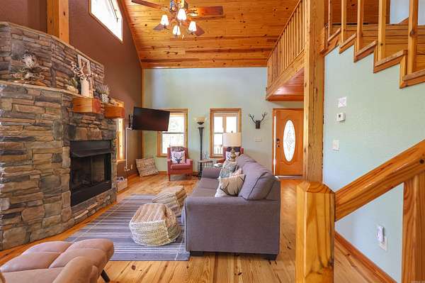 Fully furnished and turnkey, this 2-bedroom, 2-bath home offers approximately 1,970 square feet of comfortable living space with a unique layout that includes a spacious loft. The main level features 1,102 square feet, while the 868-square-foot loft provides additional flexibility for guests or entertainment. Designed for both personal enjoyment and rental potential, the property offers strong appeal for short-term rental opportunities. Outdoor features include a 10x19 open wood deck, an 8x4 covered porch, a 340-square-foot covered front porch, and a private 14x8 deck off the second-floor bedroom. A firepit area and horseshoe pit add to the outdoor experience. Additional highlights include a gas log fireplace, gated entrance, and established restrictions. Conveniently located just 4 miles from Mountain Harbor, 4.9 miles from Crystal Springs, and 22 miles from Hot Springs.