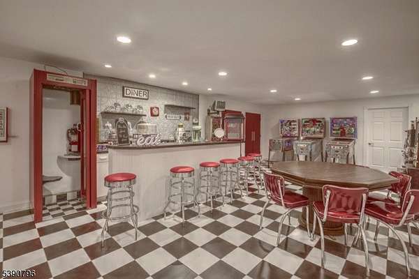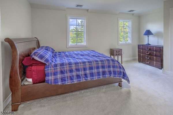 Welcome to Raspberry Hill, a distinguished Federal-style estate designed by Beer & Coleman, set on over five wooded acres in a private Mendham Township cul-de-sac. Crafted with Lafayette jumbo brick, cast stone accents and a striking eight-column Corinthian colonnade, this residence blends architectural elegance with modern sophistication. Double mahogany doors gracefully open to a soaring two-story foyer adorned with marble floors, establishing the grandeur of this magnificent home. Inside, you will find refined details throughout: a cherry-paneled library with Brazilian cherry floors, a sunroom wrapped in windows, formal living room with fireplace, and a two-story great room with French doors to the stone patio. The gourmet kitchen is fitted with Sub-Zero and Viking appliances, a Wolf cooktop, wet bar with brass sink, and custom cherry cabinetry. A formal dining room with oak inlay floors and a medallion ceiling offers the perfect stage for elegant gatherings. Upstairs, the primary suite includes a gas fireplace, spa bath with marble vanities, Jacuzzi tub, and expansive walk-in closet. The finished lower level surprises with a home theater, retro-style diner & gym. Conveniently located with easy access to local amenities and top-rated schools, this exceptional home offers a rare blend of luxury, comfort, and thoughtful design. Surrounded by natural beauty, minutes from top ranked Mendham schools, highways & trains to NYC, parks, golf, and equestrian facilities.