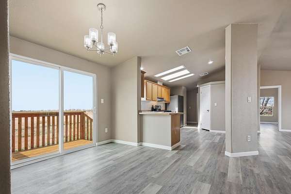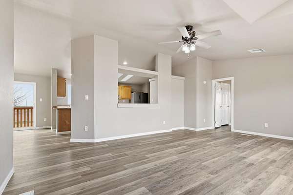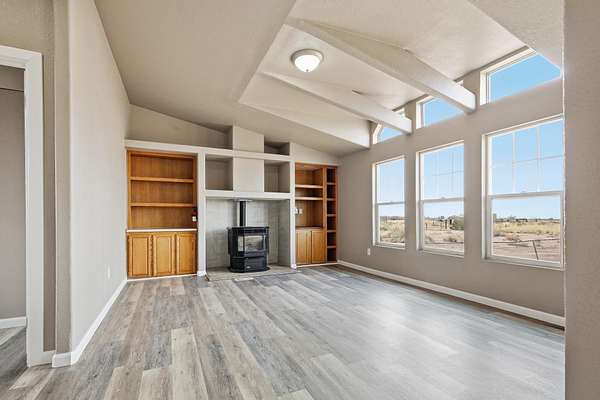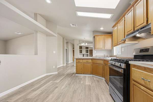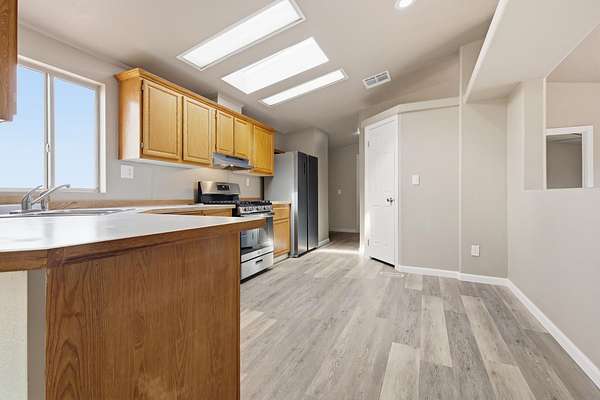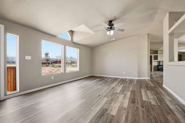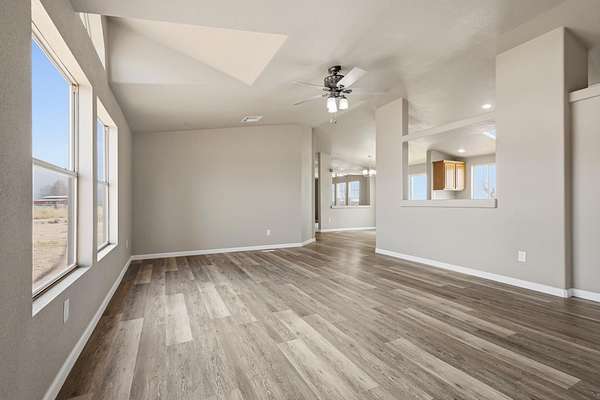 - Fireplc, Flooring, Liv RM, Skylight, Split Floor Plan, Vinyl
