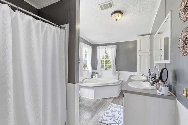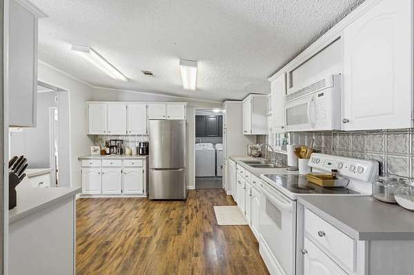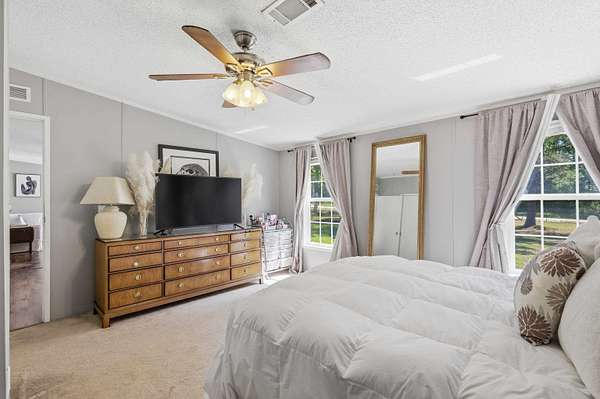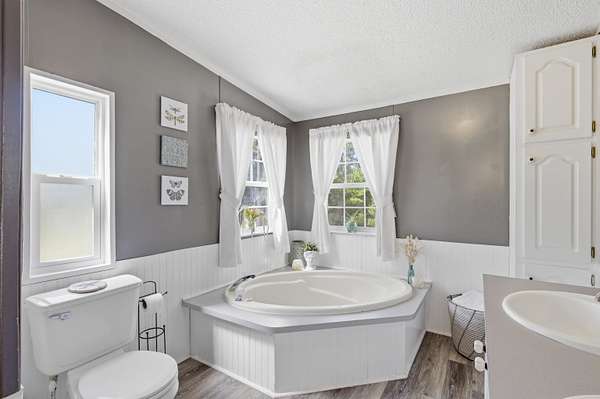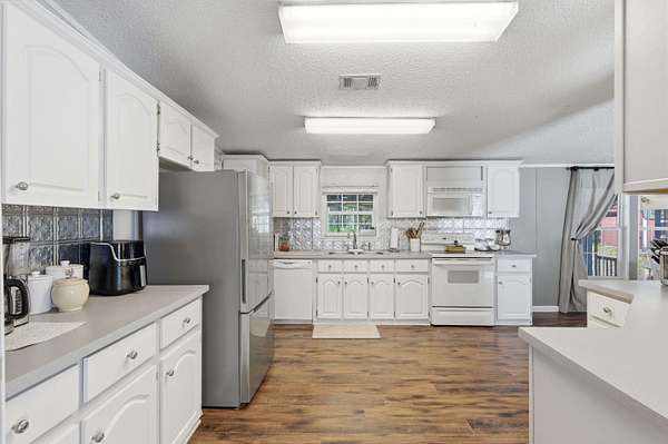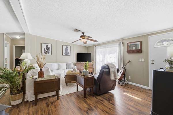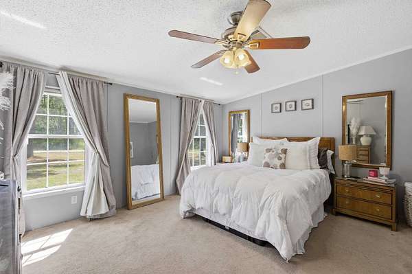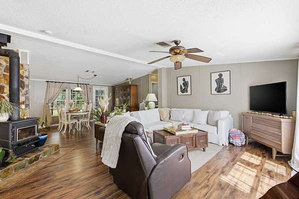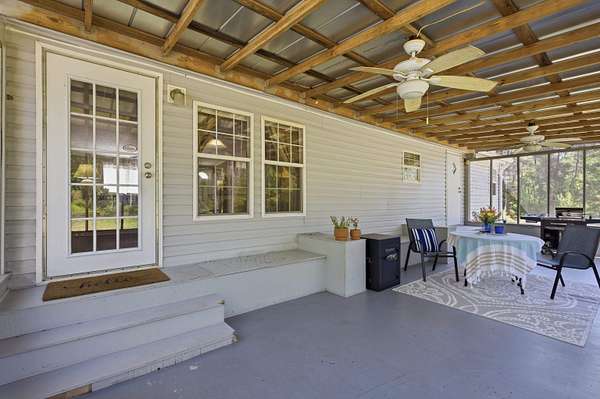 Tucked behind a gated entrance and surrounded by 5.54 acres of open space, this property offers the kind of privacy and freedom that is hard to find at this price point. With no HOA, you have the flexibility to truly enjoy country living with room for livestock, horses, RVs, trailers, ATVs, UTVs, and more. As you arrive, you are welcomed by a wide open parking area with plenty of space for all your needs. Walking up to the large front porch, you can already picture slow mornings with coffee overlooking your land and peaceful evenings unwinding in quiet surroundings. Inside, the home is well maintained and thoughtfully laid out, with the entry opening into a spacious family room, a separate living room, and a dining area just off the kitchen, creating multiple spaces to gather and entertain. The kitchen is generously sized and connects to a dedicated laundry room for added convenience. The split floor plan offers privacy, with a cozy primary suite featuring a garden tub, double vanities, and a walk in closet, while the opposite side of the home includes two additional bedrooms and a guest bathroom. Stepping outside, the screened in porch creates the perfect setting for hosting family gatherings or simply enjoying the outdoors. The property continues to impress with a heated and cooled shed that can serve as an office, gym, or creative space, a fire pit area for evenings under the stars, and an additional shed for storage. With a fenced yard, this well cared for home offers a rare opportunity to own a private, versatile property that truly lets you live the lifestyle you deserve.