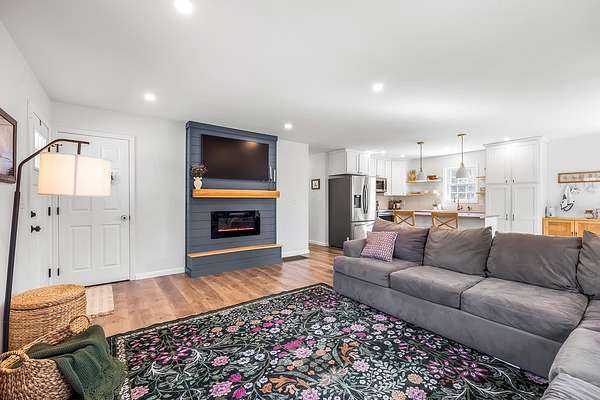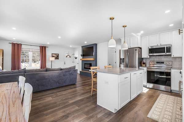 Sitting above the Tioga River on 4.37 private acres, this beautifully updated 2020 Belmont ranch has what you're looking for and more! From the moment you step inside, you're greeted by an abundance of natural light pouring through generous windows. The main living space is anchored by a stylish shiplap electric fireplace feature wall that effortlessly flows into the heart of the home: a beautifully appointed kitchen with crisp white shaker cabinetry, quartz countertops, and stainless steel appliances. It's truly a space for gathering. Recently, the primary suite received an update with a walk-in closet and spa-like ensuite with a shower and separate stand alone soaking tub. The second full bath keeps up with double sinks, botanical wallpaper, and a shower/tub combo. You'll find two more well appointed bedrooms to round out the main level. Downstairs a playroom has been created to contain the chaos or make it into a home office, workout zone, guest space, game room, or anything you can dream up! Out back, the deck is where you'll want to spend every possible moment. The home sits elevated above the Tioga river so you get those gorgeous sweeping tree-lined views. On a clear morning when the sun rises over the water, it's hard to imagine a better place to have your coffee. Want to get up and close to the river? A trail from the property will lead you to it! Not to worry - a fully fenced (2025) area will keep kids and pets in view. Fully owned Enphase solar panels (8.9kW, installed 2025) means you're generating your own energy and keeping utility costs low from day one. As a Belmont resident you'll have exclusive beach access on Lake Winnisquam plus Lake Winnipesaukee is just minutes away, and the White Mountains are close enough for a spontaneous weekend adventure. Day-to-day errands are easy with shopping and restaurants nearby, and commuters will appreciate the quick access to I-93 and 106. Showings start 4/17. Open houses Fri 6-8 pm, Sat 10-12 am, and Sun 12-2 pm!