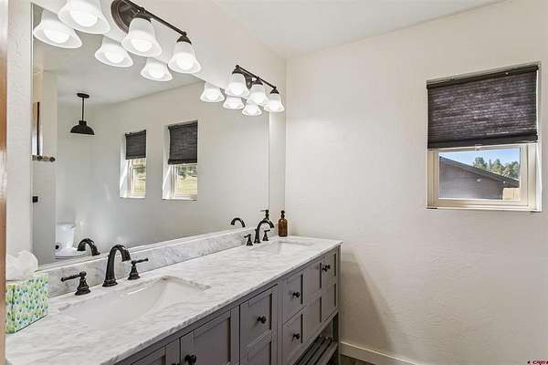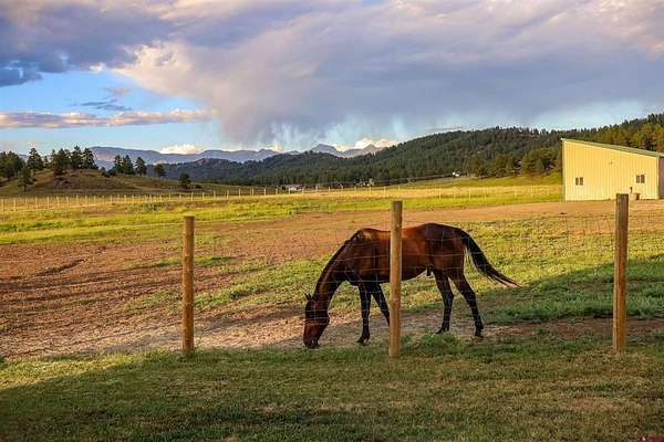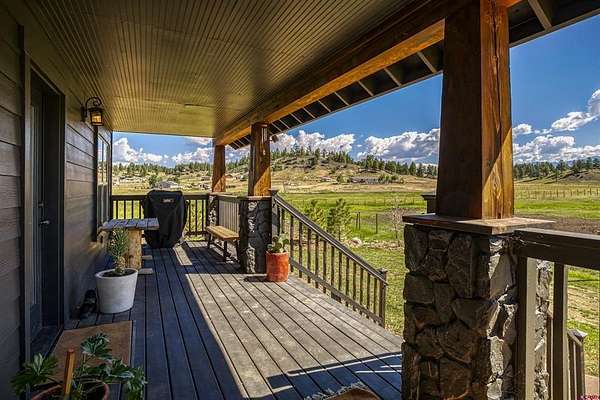 Live the Mountain Lifestyle You've Been Dreaming Of. If you're looking for space, views, and the freedom to live your way--this one has it all. This beautifully updated home offers nearly 3,000 square feet of comfortable living space on over 3 lush, fenced acres, bordered by 10 acres of greenbelt for added privacy and room to roam. Whether you're into horses, multi-generational living, or just want elbow room and fresh air, this property checks all the boxes. The home features a light-filled layout with a main-floor primary suite (with its own deck access!), a full bedroom and bathroom on each level, plus a large flex space that could serve as an office, gym, or guest overflow. The kitchen is warm and welcoming, with a full pantry, sliding doors to the expansive covered Trex deck, and cozy in-floor heating. Radiant baseboard heat keeps the rest of the home comfortable all winter long. The fully finished lower level includes a separate apartment with its own entrance--perfect for guests, rental income, or multi-gen living. Outside, enjoy your own park-like setting with mature landscaping, pasture space, and stunning mountain views of the east range of the San Juans. A 3-stall horse barn with power and water is ready for your equestrian needs, and the asphalt driveway makes year-round access a breeze. Other highlights include: ? New paint & appliances ? Hardwood floors ? Minimal covenants ? Close-to-town convenience ? Expansive covered decking for outdoor living Whether you're dreaming of a 4-H lifestyle, multi-family flexibility, or simply want a beautiful mountain home to gather friends and family--this property delivers.