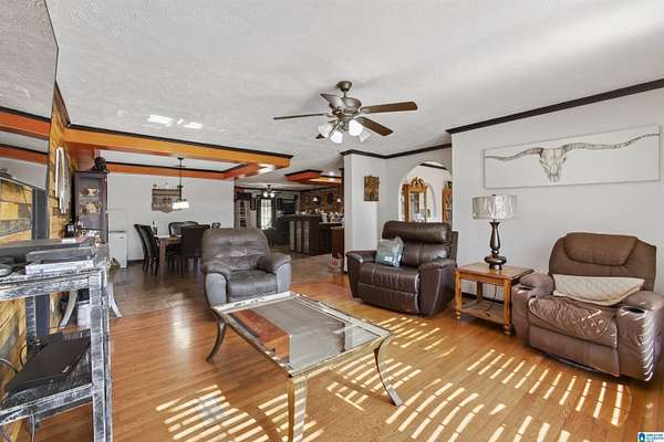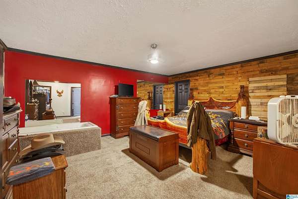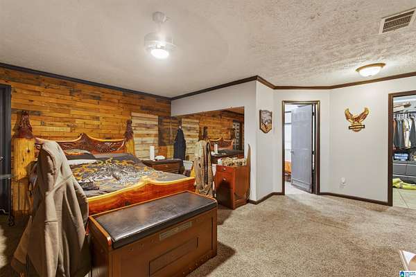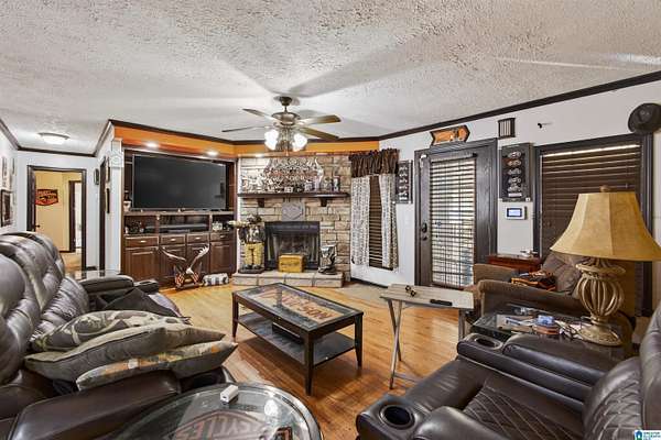 Spacious 5-bedroom, 2-bath manufactured home situated on a versatile 5-acre tract. Home offers a bonus room and a kitchen with tons of cabinet space for ample storage. The living room features a cozy fireplace, creating a welcoming space for gatherings. Property also includes a stocked pond, a dedicated man cave with half bath, and a separate hot tub room--perfect for relaxing or entertaining. Plenty of room for work and play with an outdoor shop/storage shed and wide-open space. Enjoy peaceful surroundings with friendly neighbors, all while being just minutes from the interstate for easy commuting and access.