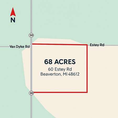 Prime 68-Acre Parcel in Billings Township - High-Visibility Corner Location! An incredible opportunity awaits with this 68-acre vacant land parcel located at the highly visible corner of M-30 and Estey Road in Billings Township. With substantial frontage on both roads, this property offers exceptional access and exposure--ideal for future development, recreation, or a private retreat. The land features a versatile mix of open fields and mature woods, offering a balance of natural beauty and usability. Whether you're seeking space for farming, hunting, or building, this property provides the flexibility to fit a wide range of uses. A large pole barn is already on site, offering immediate storage or workspace options. Don't miss your chance to own a sizable, well-situated tract in a growing area with excellent road access. Schedule your walk of the property today!