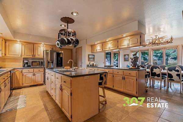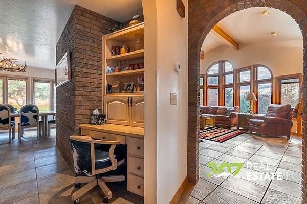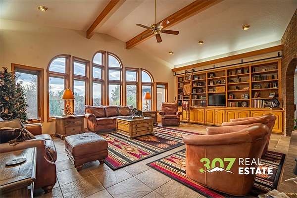 Located only 6 miles from downtown Cody and 3 miles from the airport, this exceptional property offers the perfect balance of convenience and seclusion. Enjoy quick access to town amenities and travel while still embracing the privacy, space, and breathtaking views that define the Wyoming dream. This rare property boasts end of road privacy and a tree lined circular driveway. With no covenants, the possibilities are endless—giving you the freedom to live, expand, or customize. The outbuildings set this property apart, featuring an approx. 30x48 shop, a large barn, and a unique greenhouse attached to the garage. With a fenced yard and expansive pasture space, this property is ideal for horse lovers and animal enthusiasts. The extensive patio area—with its built-in brick fire pit—is perfect for entertaining family and friends under Wyoming’s wide-open skies. Inside, the home exudes character and charm with unique interior brick accents and a custom-built library. The kitchen provides plenty of space to prepare meals and entertain guests. Stay warm during the winter months with two grand wood fireplaces in the living room and master bedroom. The basement bedroom has ample storage, a full bathroom, and a wood stove. The master bedroom is a serene haven boasting an ensuite bathroom and a large built in desk. Natural light floods in from skylights and a wall of windows, emphasizing the luxury and privacy of the space. Beyond the iron gate, your Wyoming dream awaits. Agent Related.