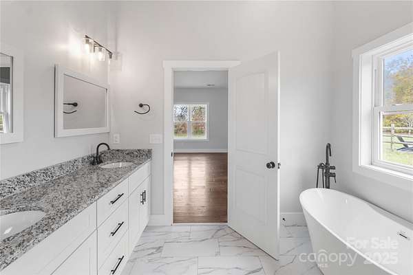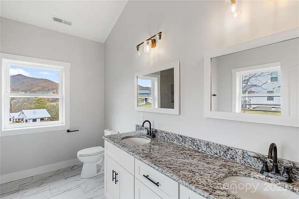 Welcome to 60 Gin's Lane in beautiful Mars Hill, NC! This brand-new custom-built 3BR/2BA home on a large 1.89-acre corner lot offers the ease of one-level living with a thoughtful open floor plan. The kitchen features granite countertops, stainless steel appliances, and plenty of space for cooking and gathering. The living area, complete with a cozy fireplace, flows seamlessly for entertaining and quiet evenings at home. Relax on the inviting front porch and take in the year-round mountain views or step out back to a spacious deck overlooking the large backyard-perfect for pets, outdoor gatherings and more. Featuring Apex Panel metal roofing and half-round gutters with exterior stamped hangers. This home is conveniently located in Bailey View Estate, a small established neighborhood just minutes from Mars Hill University. Commuting is a breeze-only 15 minutes to Weaverville and 25 minutes to downtown Asheville, giving you easy access to shopping, dining, and cultural experiences while still enjoying the charm of small-town living. Don't miss your chance to own this move-in ready quality-built home!