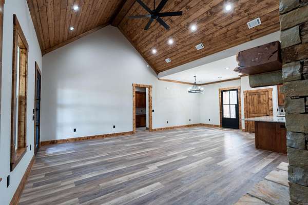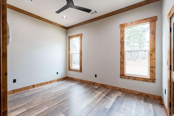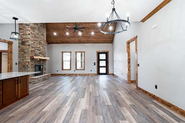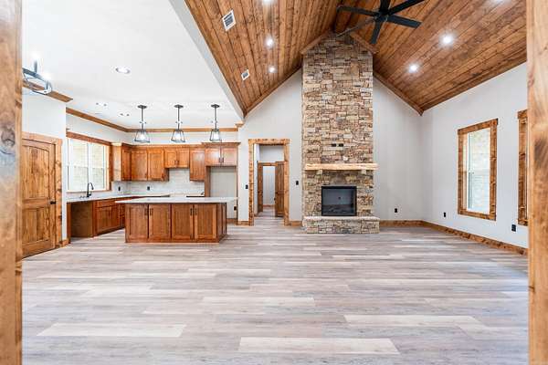 New construction home located in one of Heber Springs' premier neighborhoods. Built by a proven local builder known for superior quality, attention to detail, and making standard what other builder charge extra for, this residence seamlessly blends timeless elegance with contemporary style. The exterior features a sophisticated mix of brick and stone wrapping around to a covered back porch with a beautiful tongue-and-groove wood ceiling-made to entertaining year-round. Step inside to vaulted ceilings with wood accents in the open living area, anchored by a stunning custom stone fireplace that creates an inviting focal point. Premium finishes elevate every space: custom cabinetry with high-end stains, designer lighting, and granite countertops throughout, including the gourmet kitchen with its large island and abundant storage. The master suite features a tray ceiling and a spa-inspired bathroom with a deep soaking tub, spacious walk-in shower, and an extraordinary walk-in closet with built-in organizers ample enough for even the most extensive wardrobe collection. From abundant natural light to large double garage, don't miss out on the perfect place to call home.