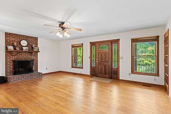 HUGE PRICE REDUCTION!!! RARE FIND!!! First time ever hitting the market. Custom Built All Brick Cape Cod privately situated amongst the Mountains in Syria Va at the base of the Shenandoah National Park and butts up to the Park land. Nearby Wineries, Hiking Trails (White Oak Falls , Rag Mountain etc.) Trout Streams, horseback riding at the nearby Graves Mountain Lodge that has Festivals year round. The Robinson River flows through the property, Open fields, Beautiful Extensive landscapes, Rock Cropping's, Nature Trails and roads throughout the property. Relax on the front porch and enjoy the Beautiful Mountains starring at you and occasional sighting's of Deer, Turkey, Bear Etc. Enjoy cooking in the Nice Big Kitchen and Dining room combo with Solid Oak Cabinets, Hardwood Floors, New Countertops, sink & Faucet, French Doors leading onto the back Patio. Main level has 3 Bedrooms, Master Suite with soaking tub & Separate Shower, His & Her walk-in closets, Ceramic Tile Flooring. 2 Bedrooms on upper level with Family Room and half bath. Solid Hardwood Doors throughout. Attached 2 car garage and a Detached 2 car garage/workshop. This home was very well built and extra reinforced, front porch, front patio and back patio are all concrete and brick. 2 HVAC systems, 1 for upper level and 1 on main level.