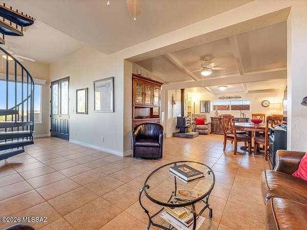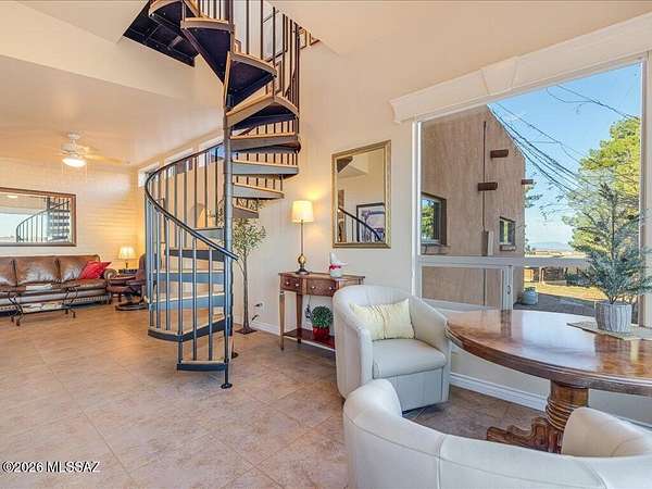 Unique home with Amazing Views! Most of main living space including primary Bdrm & 1 Guest Bdrm on main level. On 2nd level a GST Bdrm w/Bath & a separate spiral staircase to an Office Tower for the ultimate Views & stargazing or ideal for art/music studio etc. Approx. 350 sq ' of home is original (kitchen/dining area only) built in 1971 with 2000 +/- sq' in new Const. added onto in 2016. Large privacy wall, w/2-12 ft auto iron entry gate, 3 carports, tack/storage shed & large WKSHOP shed w/AC/heat. Great horse acreage w/mature shade trees, round pen, 2 stalls & cross fenced. Add'l unused septic system for future GST home, lovely covered patio great for outdoor BBQ's & fruit/olive trees. Home offers beautiful tiled showers, wood interior doors & tasteful craftsmanship & charm thru-out! Property home square feet is approx. and should be verified. Make your offer today!
