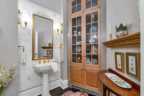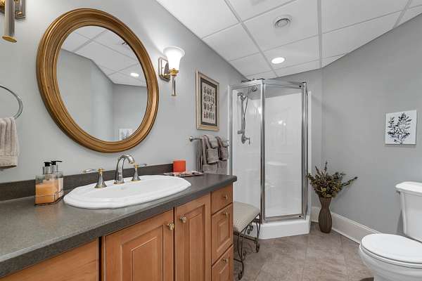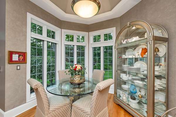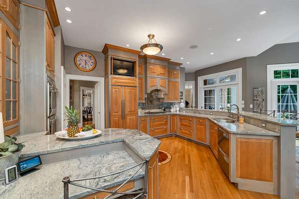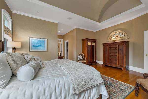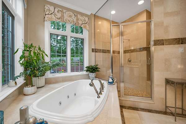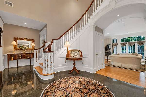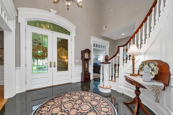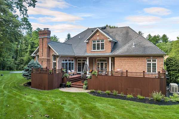 This custom-built, all solid-brick & granite accented home showcases fine architecture & exquisite finishes. A grand two-story foyer welcomes you with a granite floor & a sweeping staircase, handcrafted by an artisan on-site. Featuring specialty trim, transoms, & multiple built-in bookcases & cabinets, the design exudes elegance. The first-floor primary suite is a luxurious retreat with a separate lounge & offering his-and-hers walk-in closets, a spa-like bath with marble flooring, an oversized shower, individual vanities, & a jetted tub. The master bedroom features a barrel ceiling, complemented by soaring 9', 12', and vaulted ceilings. All first-floor living areas flow seamlessly to a multi-level mahogany deck with a sunken hot tub & gas firepit, perfect for entertaining. The second floor includes two bedrooms, sharing a Jack-and-Jill bath, while a third-bedroom suite has a private study & bath. Every bedroom has walk-in closets, plus a cedar closet a large, walk-in storage space is located on the second floor. Enjoy cozy evenings in the family room with a soaring brick fireplace with a gas log insert, or entertain in the formal living room with its gas fireplace. The finished lower level features a media room, game room, & exercise area. Beautifully landscaped with hardy greens & perennials, this property is minutes from Bedford Center & is flanked by two conservation areas. Enjoy the convenience of nearby shopping, services, and the highly regarded Bedford schools