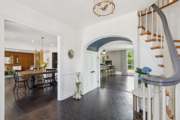 Incredible opportunity in prestigious Barrington Hills! Set on 5 lush acres in the heart of horse country, this beautifully updated estate offers the perfect blend of modern luxury and timeless charm. The first floor has been completely renovated and showcases a stunning reimagined layout, while the second and third floors are ready for you to fully remodel. The 2 levels feature hardwood flooring throughout. Step into the elegant foyer with a grand staircase that sets the tone for the home. The spacious great room impresses with a striking fireplace (with new gas starter) and a wall of windows that flood the space with natural light and frame serene views of the outdoors. It opens seamlessly to a lovely screened porch, perfect for indoor-outdoor living. The brand-new, designer kitchen is a chef's dream, boasting sleek cabinetry, quartz countertops, stylish lighting and hardware, a pot filler, and thoughtful reconfiguration for both form and function. The adjacent dining room blends original character with contemporary updates, while the formal living room flows into the dining area-ideal for entertaining. A distinguished gentleman's study features rich paneling, custom built-ins, and even a hidden bar. The cozy family room includes a second fireplace and connects to the indoor pool room-an unexpected luxury perfect for year-round enjoyment. Upstairs, you'll find five spacious bedrooms and two full baths on the second level, and two additional bedrooms (or office/art studio) plus a full bath on the third floor. Outside, enjoy a 30' x 60' brick barn, an in-ground pool, a circular drive, and a 4-car garage. Major mechanicals are new, giving peace of mind to the next owner. With endless potential and a spectacular setting, this is a rare chance to create your dream retreat in one of the area's most sought-after locations. The right buyer will appreciate the opportunity to bring their ideas to the second and third floors as they need extensive renovations. There is no basement or air conditioning in this home. Space pack is an option, however would fall to the buyer to install.
