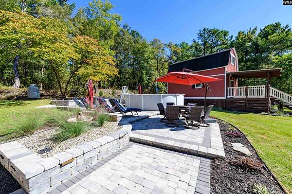 Escape to peaceful country living on this picturesque nearly 13-acre property, where modern comfort meets natural beauty. This charming one-story home is surrounded by mature trees, a private stocked 2 acre pond, and beautifully landscaped grounds, featuring a concrete paver patio and expansive back deck that overlook the serene pond and wooded backdrop. The screened front porch provides the perfect spot to relax and take in the tranquil setting. Inside, the home offers a cozy living room with a stone fireplace, a well-appointed kitchen with a breakfast bar, stainless steel appliances, and a dining area that opens to the outdoor spaces--ideal for hosting gatherings. A spacious laundry room adds to the home's practicality. The primary bedroom is a personal retreat with a dual vanity, soaking tub, separate shower, and a large walk-in closet. The outdoor living experience is further enhanced by an above-ground pool with an outdoor shower, perfect for summer fun. For those who need extra storage or workspace, this property boasts not one, but two garages--a two-car attached garage plus a separate detached garage, offering plenty of space for vehicles, hobbies, or storage. The two-story barn, complete with a covered porch, provides even more potential for a guest cottage, workshop, or creative space. A custom-built treehouse adds charm and fun. With mostly level topography and mature landscaping, this property is a true retreat, conveniently located near Lake Wateree for additional outdoor recreation. Whether you're seeking a forever home or a peaceful weekend getaway, this unique property delivers unmatched tranquility and versatility. Don't miss your chance to experience country living at its best! Seller is a licensed real estate agent in SC. Disclaimer: CMLS has not reviewed and, therefore, does not endorse vendors who may appear in listings.