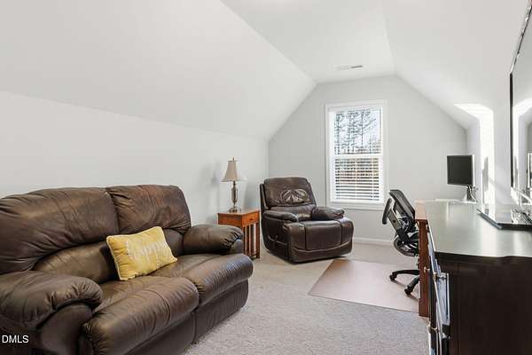 Welcome home to peaceful living at the end of a quiet cul-de-sac. Experience the American Dream on nearly two private acres, backed by beautiful North Carolina pines. Start your mornings surrounded by nature, with serene wooded views and exceptional birdwatching right from your backyard-spot red-tail hawks, yellow warblers, and bluebirds in their natural habitat. The expansive lot offers endless opportunities for backyard games, barbecues, gardening, or simply enjoying the tranquility of this scenic setting. Thoughtful landscaping adds to the charm, featuring banana plants, striking blue hydrangeas, and Pillar Rose of Sharon that attract hummingbirds throughout the summer months. This property truly provides a peaceful retreat after a long day. Inside, the home features a functional and inviting layout with a cozy gas fireplace, an optional drop-zone or workspace nook, and a first-floor laundry room complete with a utility sink and cabinetry for added convenience. Upstairs, you'll find a versatile bonus room with a locking door-perfect for a home office, guest room, or additional bedroom. This home is loaded with upgrades, including soft-close cabinets, upgraded kitchen appliances, five ceiling fans, a screened-in porch, and an extra-large patio ideal for entertaining or relaxing outdoors. Thoughtfully designed and beautifully situated, this home offers comfort, space, and serenity all in one.