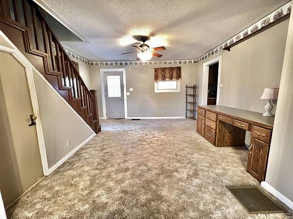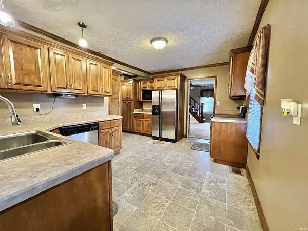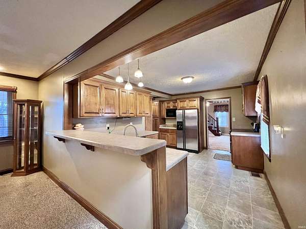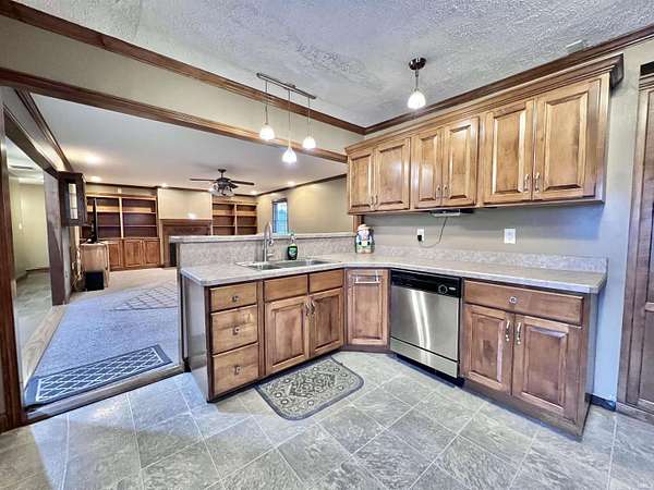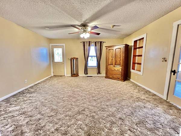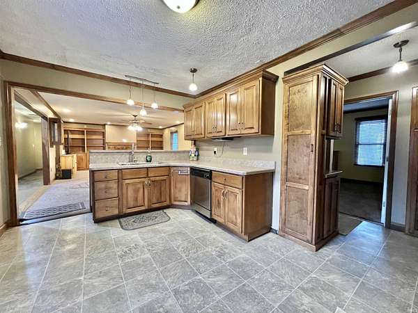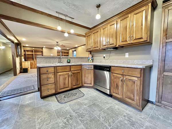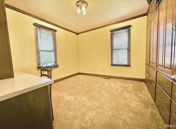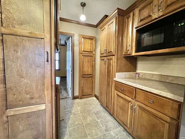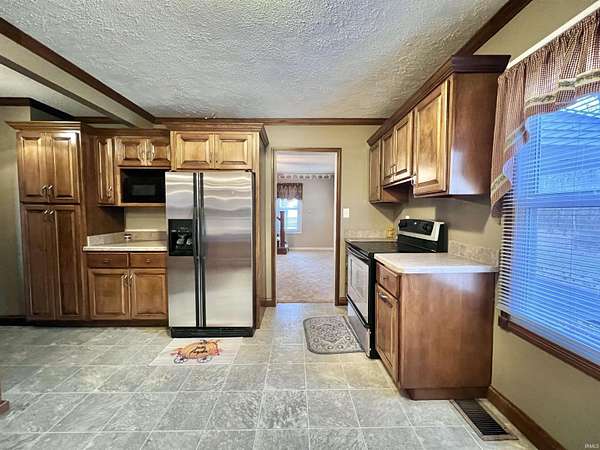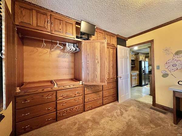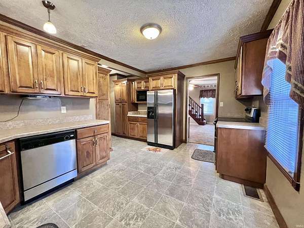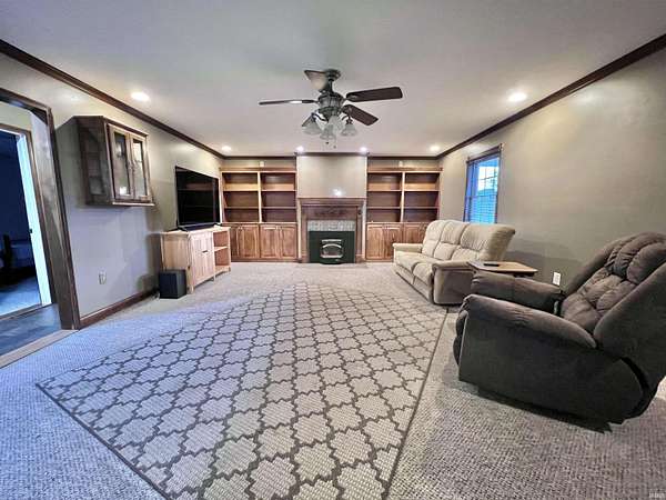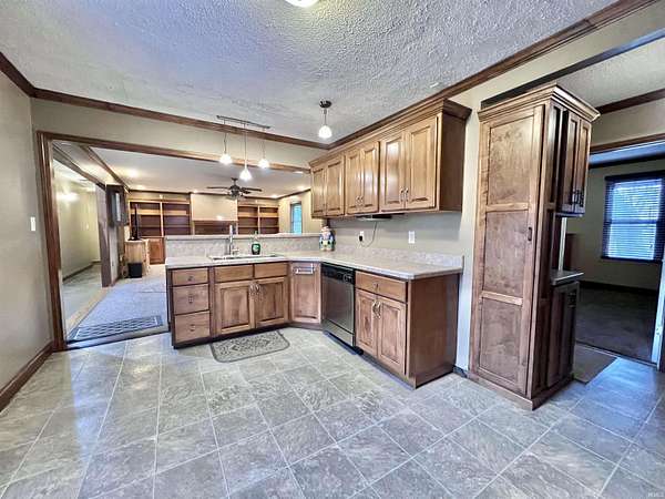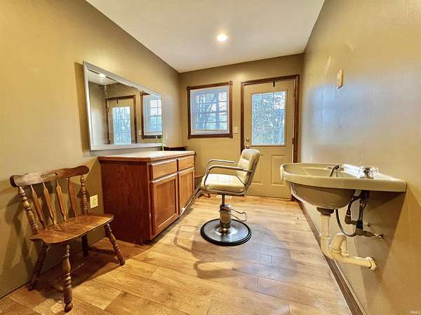 Discover a welcoming 2-bedroom, 2-bath home set on 2.75 acres in a convenient Boonville location. Originally built in 1938 with a substantial addition completed in 2004, the property blends classic character with extended living space. Custom cabinetry is featured throughout the home, including the kitchen, living areas, and built-ins that add both warmth and functionality. The main living spaces include two comfortable gathering rooms, each offering generous square footage and flexible layout options. A bonus room provides additional versatility for work, hobbies, or storage needs. The kitchen features custom cabinets, ample counter space, and a practical flow to the adjacent living area. The primary bedroom offers direct access to a spacious bathroom with double vanities and additional storage. A second full bathroom serves the remaining rooms. An additional salon room with its own exterior entrance provides a unique layout option for a variety of uses. Outdoor spaces include a covered front porch, a deep backyard bordered by mature trees, and a barn toward the back of the property. The 2.75-acre setting provides room to enjoy the outdoors while remaining close to local dining, parks, and everyday conveniences. With a blend of acreage, custom woodwork, flexible interior spaces, and a convenient location along IN-261, this property offers a comfortable setting with room to make it your own.