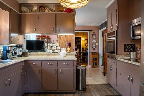 - Built-In Electric Range, Cooktop, Dishwasher, Microwave, Refrigerator, Stainless Steel Appliance(s)