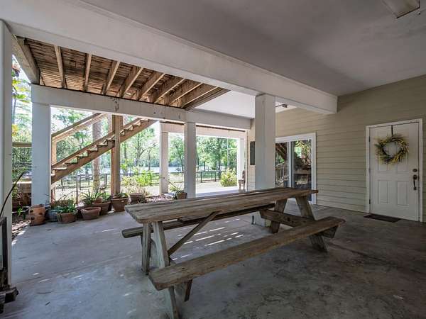 WATERFRONT PARADISE ON THE OCHLOCKONEE RIVER! This stunning 3BD/2.5BA home sits on over 2+ peaceful, fenced acres along the beautiful Ochlockonee River, complete with your own private dock and endless opportunities for boating, fishing, and relaxing in nature. Inside, you'll find a spacious, sunlit living area featuring gorgeous wood floors, soaring ceilings, and a cozy wood-burning fireplace-perfect for chilly evenings and creating that warm, welcoming vibe. The heart of the home is the chef's kitchen, showcasing custom wood cabinetry, granite countertops, subway tile backsplash, and a huge island that's ideal for entertaining or family gatherings.French doors lead out to ra backyard paradise shaded by mature trees and framed by peaceful river views. Whether you're sipping coffee on the porch, enjoying the firepit, or casting a line from your dock, this property makes every day feel like a getaway. Tucked away for ultimate privacy, yet conveniently located just minutes from downtown Sopchoppy, local beaches, state parks, and all that Wakulla County has to offer-this is Old Florida living at its finest, with a touch of modern comfort. At high tide its 18 feet deep at the dock aand has a small boat ramp. Also, 15 minutes boat ride to the gulf.