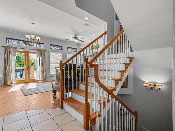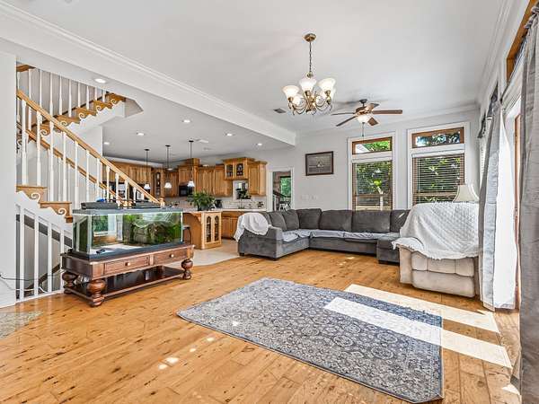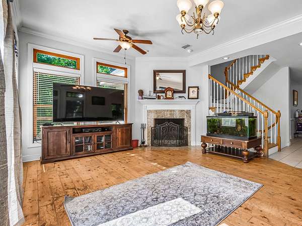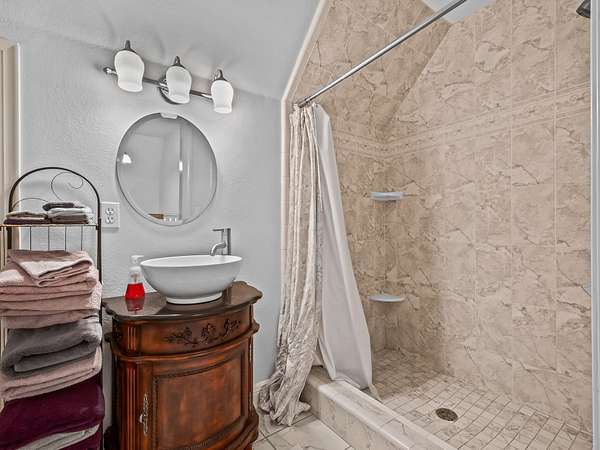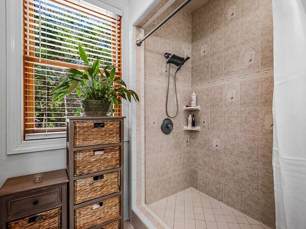 - High Ceilings, Pantry, Primary Downstairs, Split Bedrooms, Stall Shower, Walk In Closets, Window Treatments