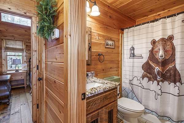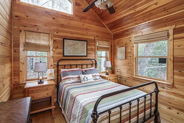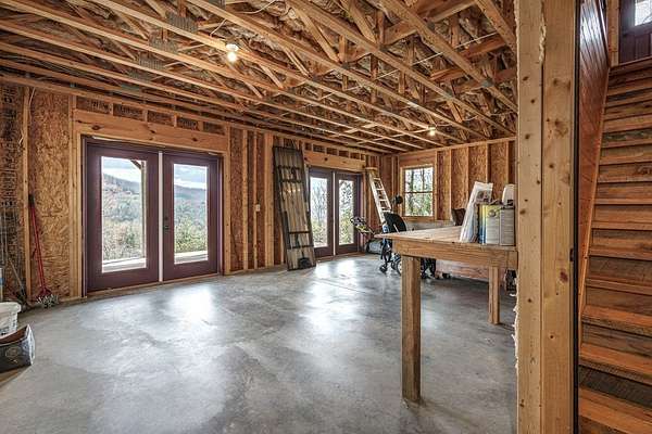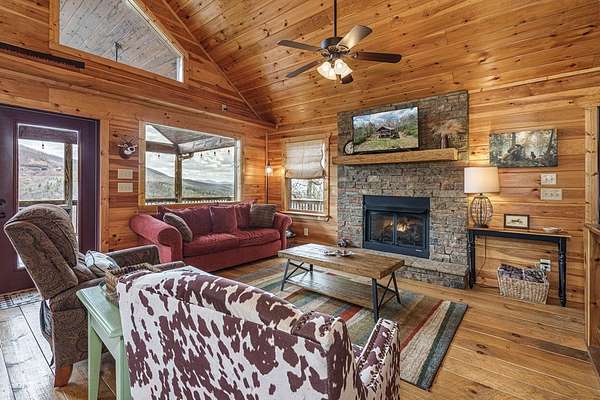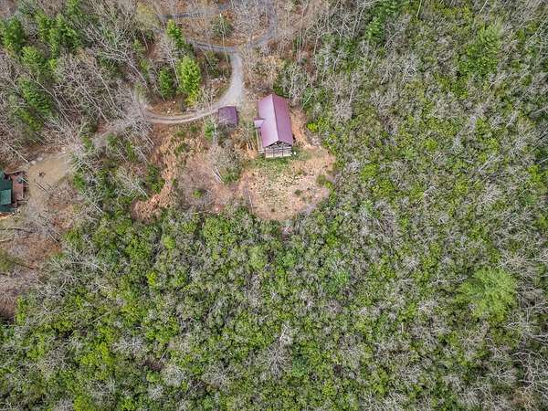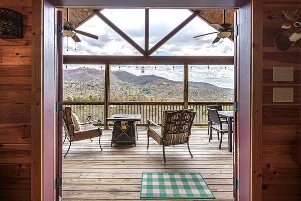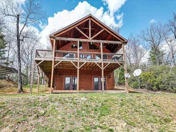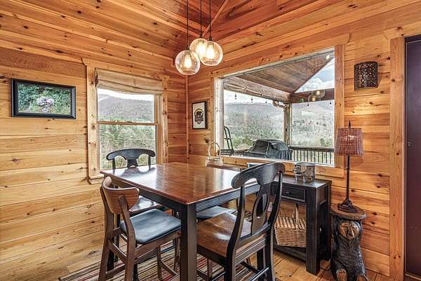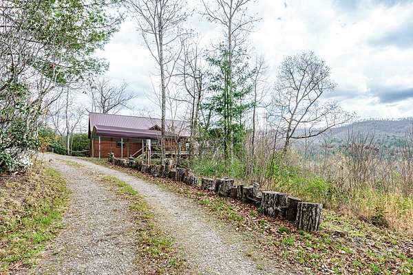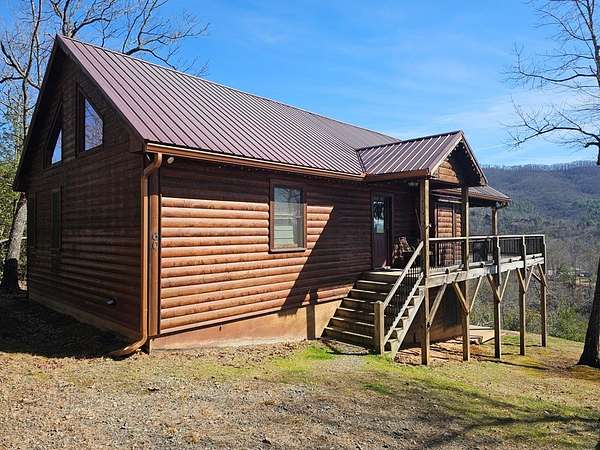 Breathtaking long-range mountain views from your own cabin surrounded by 1.94 acres of serene beauty. This stunning mountain-view retreat boasts an inviting open floor plan, featuring exquisite hardwood floors that flow seamlessly throughout. The vaulted wood ceilings and a majestic stone fireplace create a warm and cozy atmosphere, perfect for gathering with family and friends in the heart of the home. The spacious kitchen is the heart of the home and features granite countertops, large breakfast bar and seamlessly flows into an inviting living area, perfect for hosting joyful gatherings. Picture yourself whipping up delicious meals while engaging with loved ones, all while taking in the beautiful views through expansive windows that flood the space with natural light. At the end of a long day, unwind in your master suite, complete with a private bath for ultimate comfort. Your guests will love the inviting second bedroom, ensuring endless memories and laughter. The unfinished lower level has plumbing already in place for a bathroom and offers endless possibilities for customization, leading directly out to a charming patio area to enjoy the views. As you transition outdoors, the screened-in covered deck is ideal for dinner under the stars or sip your morning coffee while basking in the incredible mountain views of your surroundings. Imagine the laughter of friends, the aroma of delectable dishes, and the warmth of good company filling your home. This versatile space is designed for creating memories that last a lifetime!