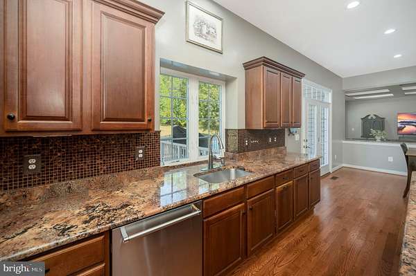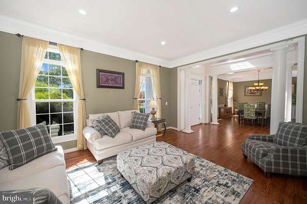 Welcome to this stunning estate home located in the highly sought-after neighborhood of The Glens. From the moment you enter the two-story foyer with its decorative details, you'll notice the thoughtful design and upgraded finishes throughout. The main level features refinished hardwood floors, elegant iron balusters on the staircase, a formal dining room with crown and picture frame molding, a main floor office, and a spacious family room with coffered ceilings and a stone fireplace with custom mantle. The gourmet kitchen is the centerpiece of the home, complete with a butler's pantry, glass-front cabinets, a built-in wine cabinet, and plenty of space for entertaining. Built-in speakers run throughout the home, creating the perfect atmosphere for every occasion. Upstairs, the primary suite is truly a retreat. It boasts a large sitting area, tray ceilings, and an en suite bathroom designed for luxury with a walk-in shower featuring body sprays, a jetted soaking tub, dual vanities, a private water closet, and a custom walk-in closet system. Two junior suites offer their own private baths, while every bedroom includes abundant closet space. A convenient laundry room is also located on the bedroom level. The finished basement is designed for both relaxation and entertaining. It includes a soundproof media room with built-in speakers, a fitness room with a large storage closet, a full wet bar with granite counters, a full-size refrigerator, dishwasher, and seating for up to ten, as well as a spacious billiards and game area. A legal bedroom and upgraded full bathroom make this level ideal for guests. Brand new carpet adds to the comfort and appeal. Step outside to your private outdoor oasis. The backyard offers a brand new Trex deck, extensive stamped concrete patios, a built-in fire pit, and a sparkling in-ground swimming pool with aluminum fencing. Surrounded by mature trees, the property provides both beauty and privacy, with plenty of space for entertaining. Recent updates include refinished hardwood floors, a new upper-level HVAC system with scrubber, a new sump pump, and more. With no shortage of space, thoughtful upgrades, and luxurious details, this estate home in The Glens is the perfect blend of elegance and functionality.