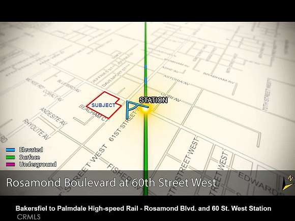 PRICE REDUCTION!!! 32.5+/- Acres Northeast corner of 60th Street West and Rosamond Blvd. Flat buildable parcel with water well/tank and the property is within Rosamond Community Water District. The owner has demolished the structure for safety reasons but some of the slabs are still intact and in place. 907 feet frontage on Paved Rosamond Blvd. and 926 feet frontage on 60th Street West. Road and Street all around the property. Within a mile is the world-famous Willow Springs Racing track. All utilities in the Street. The properties are located very close to shopping, restaurants, and Southern Kern Unified School District and Hwy. 14. The High-Speed rail project connects Bakersfield to Palmdale, with an approximately 25-minute high-speed rail trip. The approximately 80-mile corridor travels through or near the cities of Edison, Tehachapi, Rosamond, Lancaster, and Palmdale with proposed stations in Bakersfield and at the Palmdale Transportation Center (There might be a future station at and closed by the subject property). THE LAND IS ALSO FOR LEASE AT $0.10/SQ. FT./YEAR (~ $4,560/ACRE/YEAR). THE LEASE AMOUNT WILL BE $141,570/YEAR.