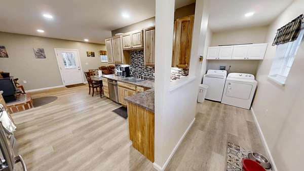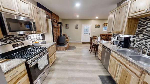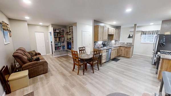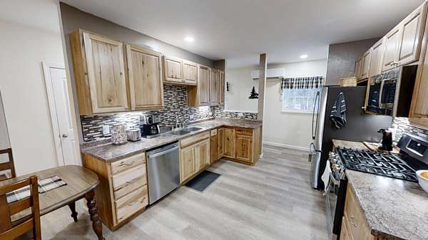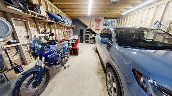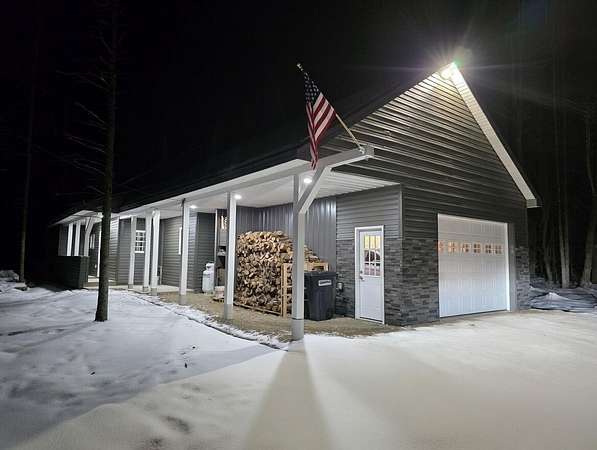 Discover the exceptional comfort and security of this 2023-built home situated at 60 Swett Road in Carmel, Maine, offering a modern, energy-efficient lifestyle on nearly 3 acres of serene, private wooded land. This 2-bedroom, 1.5-bath residence features high-quality construction designed for superior heating and cooling efficiency, complemented by a heat pump water heater and a standby generator for reliable year-round comfort. The main level includes an open-concept living area with a large food pantry adjacent to the kitchen, while the oversized one-bay garage boasts 10-foot ceilings and abundant storage space above that could be finished into additional living quarters. A standout feature is the secure, fire- and theft-resistant bunker-style gun room with a heavy-duty safe door, which could easily be converted back into a bedroom to suit evolving needs. Outdoor enthusiasts will appreciate the extensive wooded acreage abundant in marketable pine trees and decades' worth of firewood, along with abundant wildlife sightings and a fenced dog area. Practical amenities include a covered front porch, covered wood storage, and a 40-foot shipping container workshop equipped with electrical service, workbench, and ample space for projects. This thoughtfully designed property combines modern efficiency, privacy, and versatility in a peaceful rural setting, making it an ideal retreat for those seeking both comfort and self-sufficiency.
