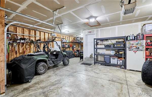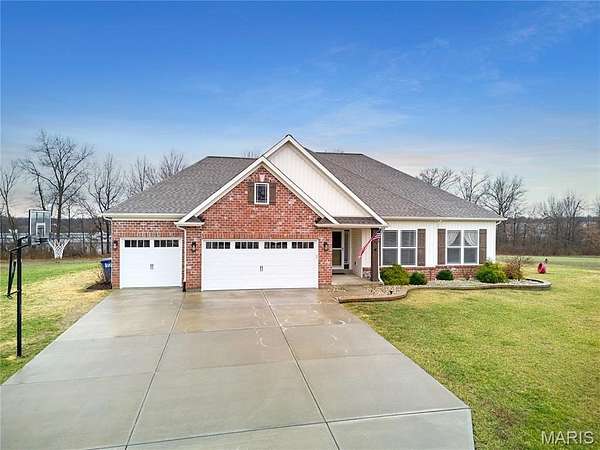 Exceptional newer construction nestled on 3 private acres, backing to mature trees. All placed in a quiet cul-de-sac with blacktop streets in desirable Southern Lincoln County. This impressive 4-bedroom, 3-bath home offers over 3,500 sq ft of finished living space, including 1,857 sq ft on the main level, designed for both comfort and functionality. The striking brick and stone elevation, spacious 3-car garage with WORKSHOP AREA set the tone. Inside, you’ll find soaring 11-foot ceilings, transom windows, and beautiful wood flooring that create an open, light-filled atmosphere. The kitchen is thoughtfully designed with staggered cabinetry, stainless steel appliances, a walk-in pantry, and breakfast bar—ideal for everyday living and entertaining. The primary suite offers a generous walk-in closet and private bath with walk-in shower. The finished lower level expands your living space with a large family room, oversized exercise/playroom, additional bedroom, full bath, and ample storage. Enjoy the privacy of acreage living with the convenience of a prime location. Remaining 10-Year Builder’s Warranty transfers with the property. DETACH BUILDINGS ALLOWED and perfect back yard for the inground pool!
