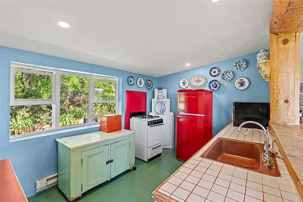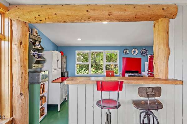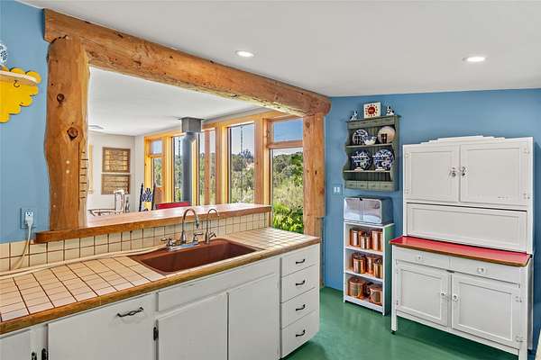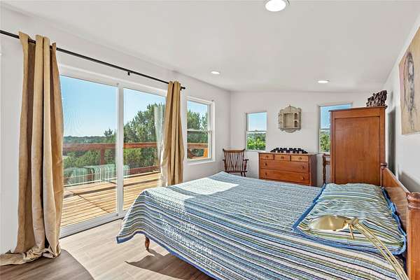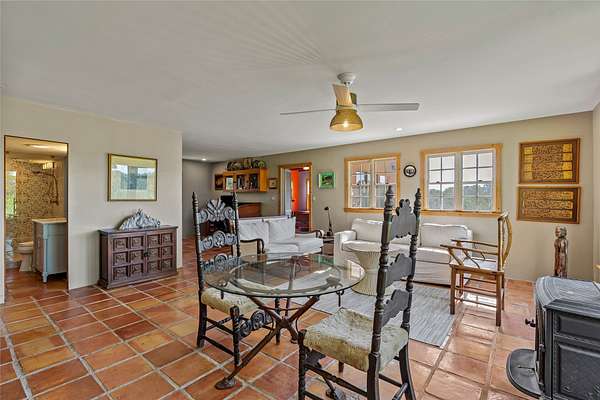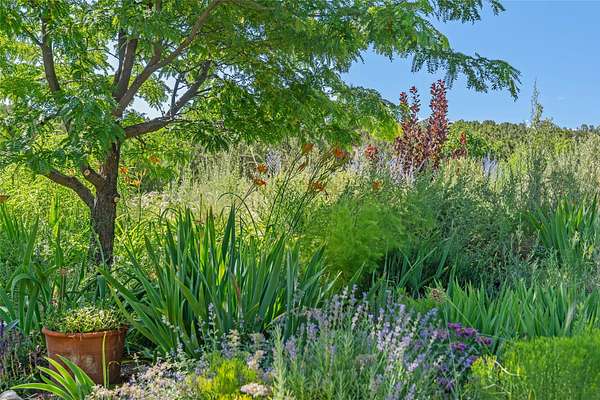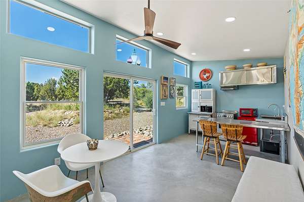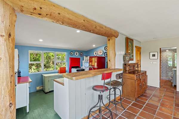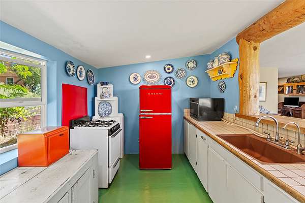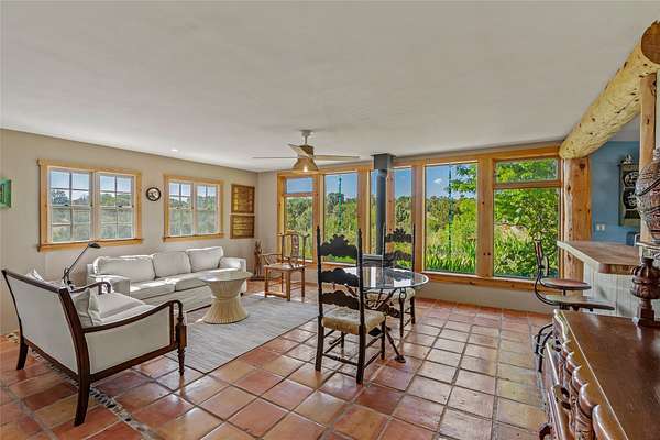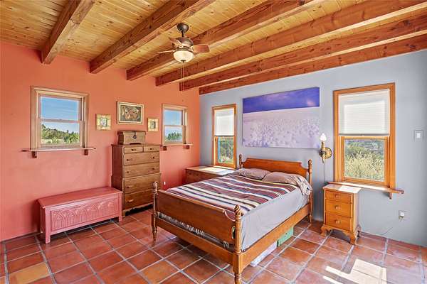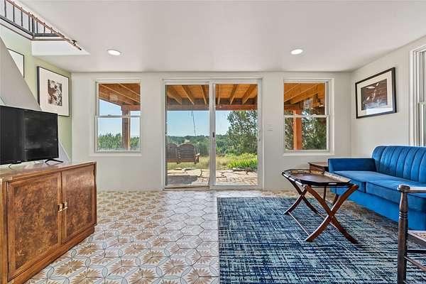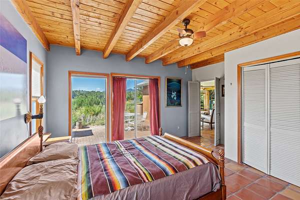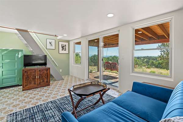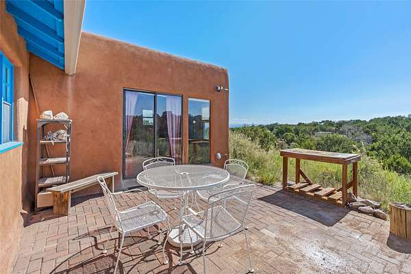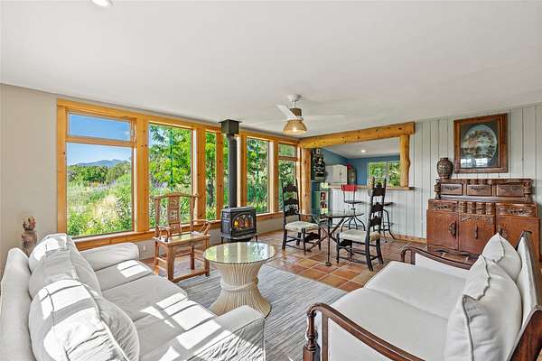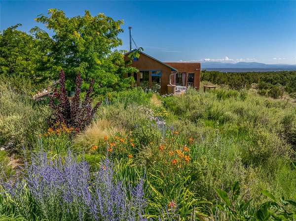 So much to offer! One bed, one bath home plus one bed, one bath detached studio on nearly 10 acres. This versatile property could function as a multi-generational home, produce rental income, or offer an excellent space for working artists, with end of the road privacy, excellent outdoor spaces, and mature gardens. This home has a private well and a grid-tied solar array and has extremely low utility builds. Lovingly cared for and updated, with Santa Fe style combined with modern touches, and significant recent work, including newly remodeled bathrooms and newer metal roofs. An upstairs deck off of the studio takes in impressive views, while the primary home is anchored in lush gardens.