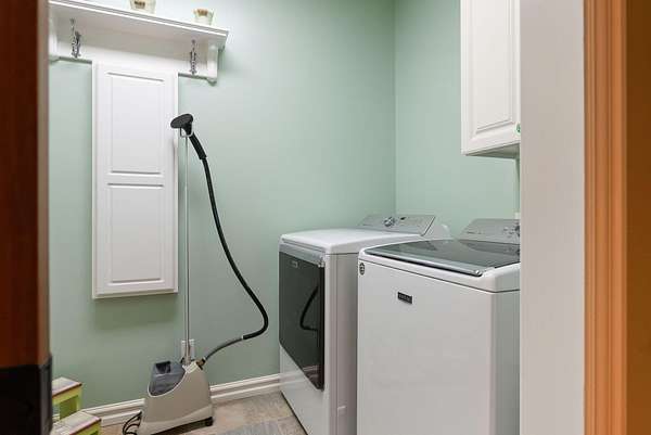 - Bar Fridge, Built-In Electric Oven, Cooktop, Dishwasher, Disposal, Double Oven, Dryer, Microwave, Refrigerator, Trash Compactor, Washer, Water Softener Owned