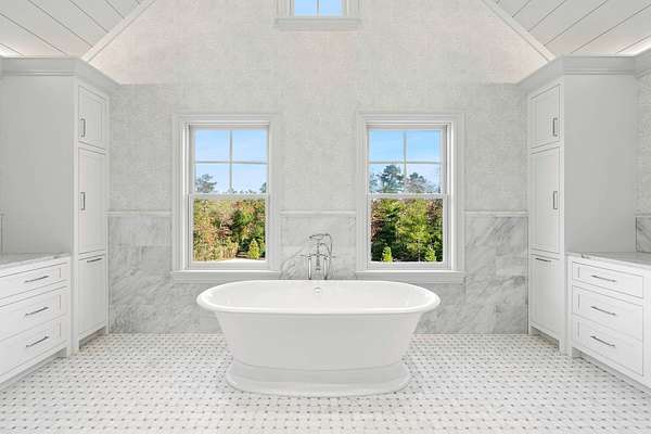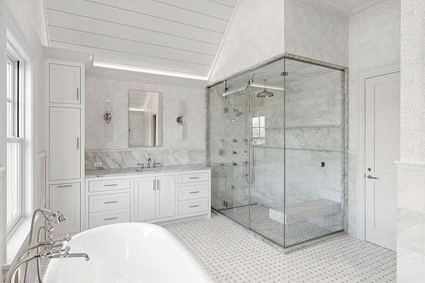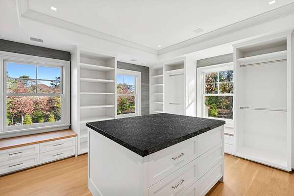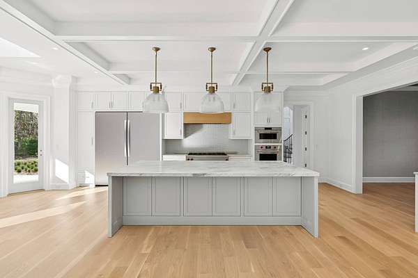 Just completed in East Hampton's Village Fringe, this newly built estate represents a rare convergence of architectural refinement, modern comfort, and three acres of curated natural beauty. Masterfully crafted and clad in classic cedar shake, the two-story traditional residence delivers nearly 12,000 +/- sq. ft. across three levels, with 7 bedrooms, 10 full and 3 half baths, and an amenity suite designed for elevated year-round living. Privately sited at the end of a long drive, the 3.1 +/- acre grounds unfold with a north-south orientation and a level of landscape architecture typically reserved for premier resort properties. Mature perimeter hedging, specimen trees, curated understory plantings, and gently bending pathways establish a sense of seclusion from the moment of arrival. Inside, a double-height foyer sets the tone for the home's scale and craftsmanship - soaring ceilings, custom millwork, and finely executed architectural details at every turn. The first floor is anchored by a grand living room with an oversized fireplace and French doors that open wide to outdoor entertaining spaces, along with connectivity to the spacious dining area. At the heart of the open main level is a beautifully appointed chef's kitchen, offering custom cabinetry, a substantial center island, professional-grade appliances, a breakfast area with sweeping views, and an adjacent service kitchen providing direct access to the outdoor kitchen with bar seating. Additional first-floor spaces include a junior primary suite, private study/office, library, wine pantry, powder room, mudroom, and full laundry room. Upstairs, the primary suite stands in its own wing - complete with a fireplace, expansive dressing room, spa-quality bath, and private terrace with access to a roof deck. Four additional secondary suites are bright and thoughtfully scaled, each with walk-in closets or ensuite baths. Connected via breezeway, a large bonus space above the three-car garage functions perfectly as an additional office, studio or lounge. The finished lower level presents an unmatched amenity collection: a state-of-the-art glass-enclosed gym with attached sauna and steam, movie theatre, recreation lounge with bar, indoor golf simulator, safe room, and multiple storage and mechanical rooms - all designed for easy everyday living and effortless entertaining. Outdoors, the estate reveals some of its most compelling features. The 16' x 50' gunite pool and detached 6' x 9' spa command the center of the landscape, surrounded by generous stone patios for lounging and dining. Beyond the pool, the meticulously designed grounds feature formal evergreens, lighting throughout, integrated pathways, and the rare luxury of a tennis court positioned discreetly within the property's landscaped envelope - an extraordinary amenity for a Village Fringe location. The offering is completed by the home's 21st-century infrastructure, including automated lighting controls, advanced HVAC and insulation systems, and high-end technology throughout. With East Hampton Village, ocean beaches, farm stands, restaurants, and boutique retail all minutes away, this newly constructed estate sets a standard for turnkey luxury living in one of the region's most sought after locations.