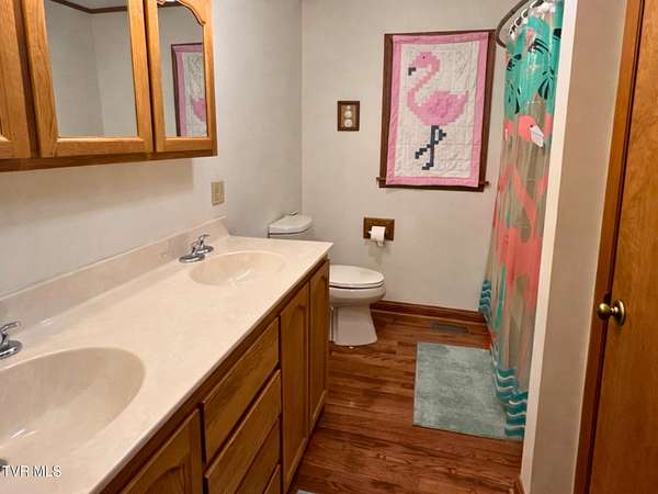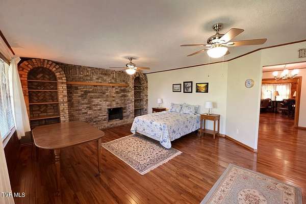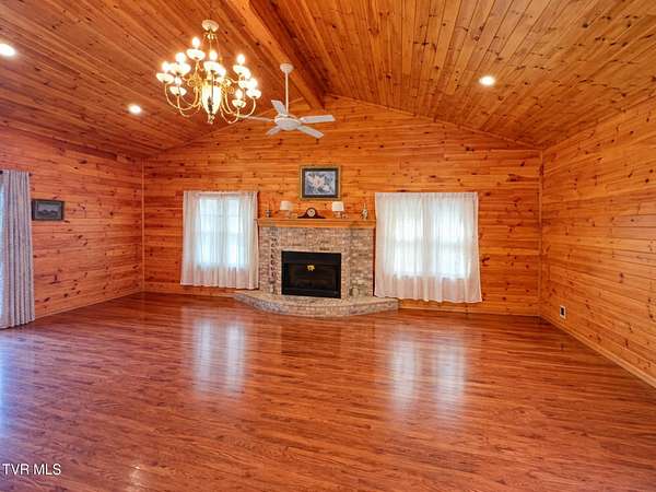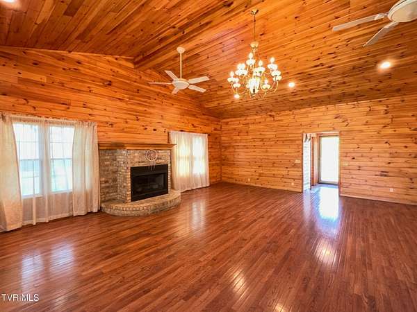 Beautiful brick Craftsman-style home on three lots totaling 1.63 acres with mountain views. Offering over 2,900 square feet of living space, including more than 2,300 square feet on the main level, this home delivers space, character, and flexibility. A new roof was installed just two years ago, providing added peace of mind. Hardwood floors run throughout the main level, complemented by two fireplaces and a functional layout. A full bath off the great room features a large walk-in tile shower, while the primary bedroom includes a relaxing jacuzzi tub. Main-level laundry adds convenience. The finished basement offers a large living area and full bath, with a layout ideal for multi-generational living, guest quarters, or a two-family setup with the addition of a kitchen. Additional space provides room for storage, hobbies, or a workshop. Enjoy the peaceful setting with mature trees and mountain views from three beautiful brick porches, perfect for relaxing or entertaining. Two garages and a carport offer ample space for parking and storage.