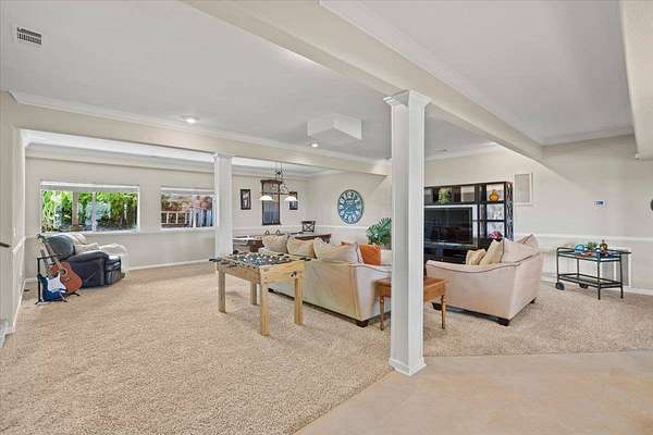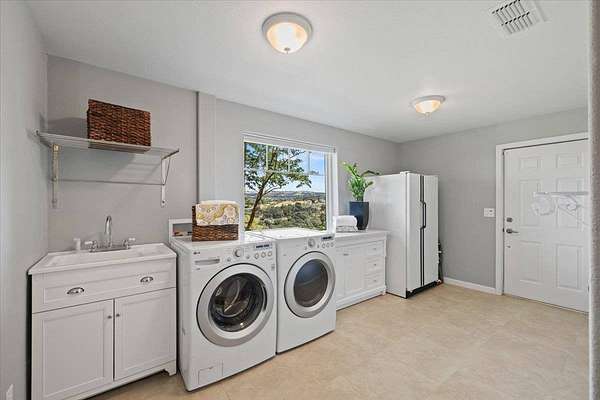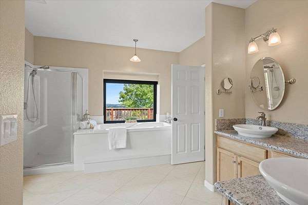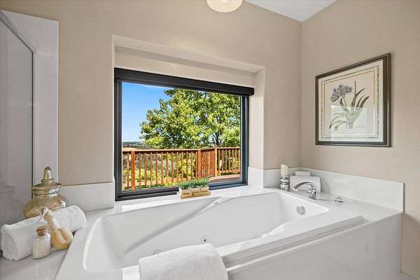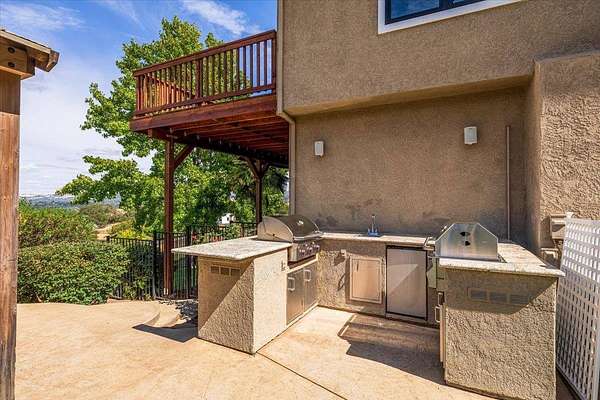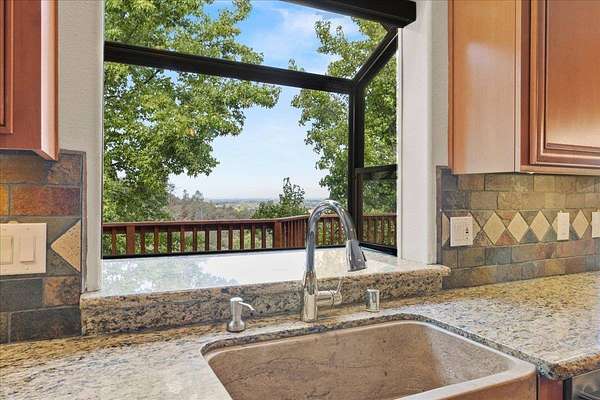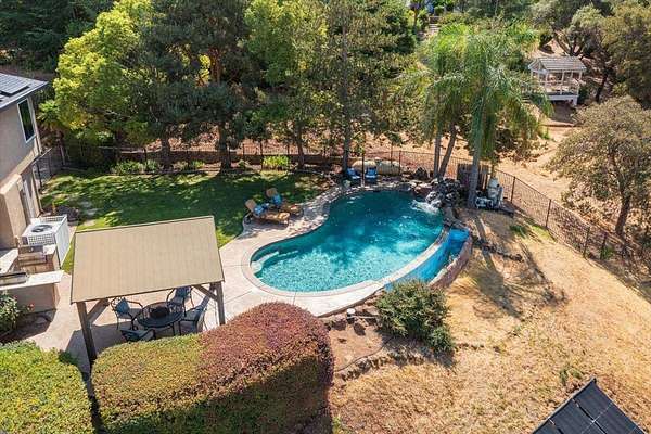 Hilltop estate in an exclusive Newcastle location offering panoramic long-range valley and sunset views. The craftsman-inspired home features an inviting, flowing floor plan filled with natural light, Andersen windows, artisan beam and stone work, and a chef's kitchen with custom cabinetry, granite slab counters, and professional-grade stainless appliances. The expansive primary suite includes an in-suite office, dual walk-in closets, jetted tub, and its own laundry. A lower-level floor plan is ideal for long-term guests or multigenerational living with a separate entrance, family room, two bedrooms, full bath, and laundry. Outdoors, enjoy the infinity-edge pool with waterfall, gazebo, expansive deck and porch, and exquisitely landscaped grounds. The five-acre parcel includes a fruit and nut orchard, unlimited year-round irrigation water, and a year round creek. This exceptional hilltop estate delivers 360-degree views and unmatched privacy. This is an extremely rare Newcastle opportunity. Welcome Home.