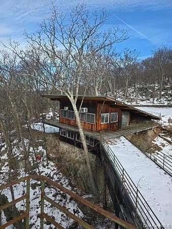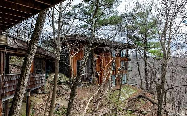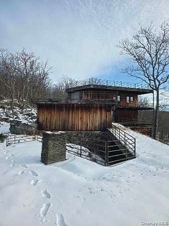 APPROVED OFFICE USE WITH 35 PARKING SPACES OR RESIDENTIAL OPPORTUNITIES. MANY POSSIBLE USES WITH AN EXISTING SITE PLAN FOR OFFICE USE THAT RUNS WITH THE LAND PLUS RECENT R-2 ZONING CHANGE WITH R-3 USES PERMITTED BY ADAPTIVE REUSE PROVISION. Permitted Community Benefit Facilities are Library, Private School, Religious, and Child day care/nursery school. 12,650 UNIQUE SQ FT OF MID CENTURY MODERN DESIGNED SPACE ON MOUNTAIN TOP ESTATE COMPOUND OF 3.25 AC. AMAZING VIEWS. 45 MILES FROM MANHATTAN. Three Buildings of different sizes, 7474 sq ft, 3578 sq ft and 1152 sq ft, allow multiple tenant, user or development opportunities. The complex was meticulously designed to minimally disturb the environment. The buildings are connected by enclosed and covered walkways and decks and green roofs. It is surrounded by State park land and there can be no development around the property. A secluded private road provides gated entrance to the property. Property is sold in "as is where is" condition.